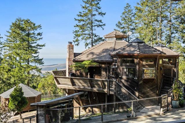 Discover the perfect blend of rustic charm and modern comfort at this 20-acre retreat perched in the hills above the village of Pescadero. With sweeping ocean views and beautifully kept grounds, this property offers room to breathe and space to dream. Step into the custom-built home and find an airy, light-filled interior with vaulted ceilings and walls of windows that frame the natural beauty outside. The upper level features a cozy living area with a fireplace, a charming kitchen, and a serene primary suite. Downstairs, a second bedroom, full bath, and spacious family room with a large brick fireplace open directly to the outdoors. A wraparound deck offers plenty of space for entertaining or unwinding in the fresh coastal air. Just above the house, a gazebo and hot tub create a private escape with sunset views over the Pacific. The property also includes a fenced pasture for horses, a bonus building, carport, and private trails that wind through your own forest. A second potential ADU site has been cleared with utilities access. All of this just an hour from Silicon Valley, San Francisco, and SFO -- rural tranquility without the trade-offs.