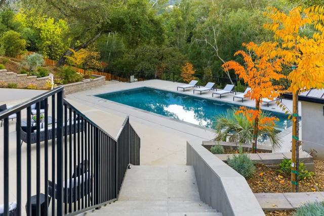 Spectacular, newly completed estate situated at the end of a private street in Saratoga's most prestigious neighborhood, MONTALVO! Architect ARCH Studio, Inc. & Guardians Construction & Development, Inc. masterfully designed and constructed this contemporary residence, featuring high-end designer finishes throughout. The kitchens boast waterfall quartz countertops, Thermador appliances and a walk-in pantry. Upon entry, one is captivated by the expansive open floor plan and the stunning views of lush greenery visible through retractable bi-fold doors that open to a glass-enclosed outdoor patio. The backyard features a generous pool and hot tub, an expansive patio, terraced grounds, and a cabana attached to an 800 sq ft, one-bedroom, one-bathroom ADU. An elevator provides effortless access to all 3 levels. The lower-level primary suite offers an excellent opportunity for a theater room. Residents can enjoy the main and upper level floors while entertaining guests on the lower level, which includes a large recreation room, a wet bar/kitchenette, a dining area, a workout area, and a wine cellar. 3 of the 8 en-suite bedrooms are also located on this level. City lights and hillside views, peaceful location, 3-car garage, 2 laundry rooms, & access to top-rated Saratoga schools!