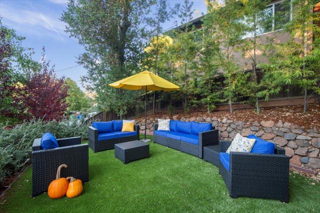 Mid-Century Modern 1 level home in prime downtown Saratoga w/Saratoga Schools + a cottage. Best of CA Living nestled in a quiet Cul-De-Sac yet steps to wonderful restaurants, coffee shops & more. Remodeled & impeccably maintained, this Wonderful Home offers open concept living & seamless indoor-outdoor entertaining. Multiple areas for entertaining: the Chef's gourmet kitchen, formal dining room, warm & inviting living room, separate family room & stunning scenic outdoors. The Gourmet Chef's kitchen features a new high-end Wolfe range & oven, Fisher & Paykel refrigerator, Bosch dishwasher, & sleek granite slab counters. The primary features a large walk-in closet & remodeled bathroom w/granite slab counter & designer tile shower w/edgeless glass. The remodeled hall bath features tile flooring, granite counter & a shower/tub combo. Cottage is perfect for guests, an office & includes a full bath. Other outstanding features: Private location w/ no rear neighbor in view; gleaming wood floors, smooth coat drywall texturing, abundant dual pane windows w/soaring sunshine & scenic views, interior laundry w/extra storage, tankless water heater, upscale hardscape w/pavers & stunning stonework, lush landscaping w/room to play, & 2 car garage. The ideal oasis yet close to major employers.