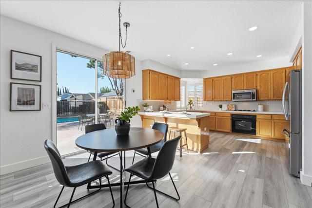 Discover this spacious 3200 sq ft home in the heart of Hollister, offering a blend of comfort and style. The kitchen is a chef's delight, featuring tile countertops, a gas oven range, dishwasher, refrigerator, and garbage disposal, all seamlessly integrated into a kitchen/family room combo. With 4 bedrooms, including a ground floor bedroom (that could be used as office), and 3 full bathrooms, the home provides ample space for family living. Generous size guest rooms with walk in closets. Escape to upstairs bonus room would make a spacious game room or second family room the whole family. The primary bathroom boasts an oversized tub and stall shower. Enjoy a cozy evening by the fireplace or a meal in the dining areas, which include a breakfast nook and dining area in the living room. Flooring options include carpet, luxury vinyl, and other materials. Equipped with central AC and ceiling fans, this home ensures comfort year-round. The built-in vacuum, high ceilings, and walk-in closets add practicality and elegance. The property features a pool, an in-ground delight with full sun exposure. 3 car garage provides plenty of parking and storage. Inside Laundry. Whole house water filter. Located within blocks of Cerra Vista Elementary School. NO HOA!