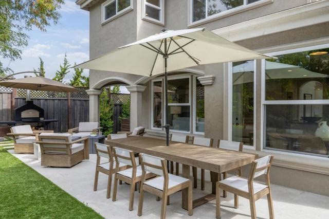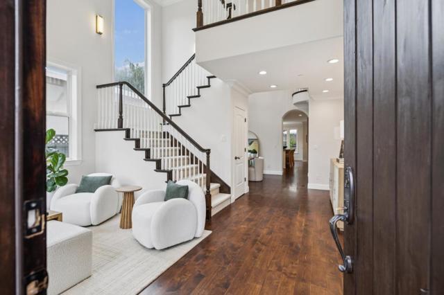Located in sought-after University Heights, this elegant residence blends timeless architecture with modern comfort. Designed with both grandeur & warmth, the home welcomes you with soaring ceilings, sunlit interiors & an inviting sense of space. A cheerful facade with manicured landscaping & an arched entry porch opens to a stunning interior. The formal entry leads to a living room with vaulted ceilings, fireplace & picture windows framing lush greenery, while the adjoining dining room is perfect for entertaining. The chef's kitchen showcases granite countertops, a large island with seating, ample cabinetry, walk-in pantry & stainless appliances, opening to a casual dining area & family room with gas fireplace & built-ins. The freshly re-landscaped backyard retreat, perfect for both relaxed gatherings and play space, offers a stone patio for al fresco dining, turf lawn & perimeter trees. The upper level primary suite includes a walk-in closet & spa-inspired bath, joined by two additional upper bedrooms with a Jack-and-Jill bath. A main-level 4th bedroom is ideal for guests or a home office. Benefitting from Las Lomitas schools & in close proximity to Stanford, Sand Hill Rd, downtown Palo Alto, Hwy 280 & leading tech campuses, this home blends elegance, comfort & location.