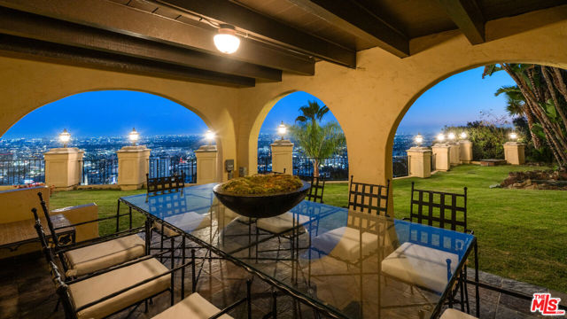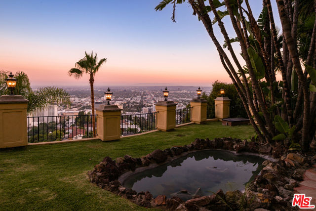 On the market for the first time in 53 years, Villa Dorada is a meticulously preserved1929 Spanish Revival estate, gracefully set on a rare, flat cul-de-sac in the coveted Outpost Estates. From the Hollywood Sign to Downtown Los Angeles and all the way to the Pacific Ocean, its sweeping views are nothing short of breathtaking. At approximately 7,400 sq. ft., this architectural jewel stands as a testament to the artistry and cultural spirit of Los Angeles' Golden Age. Steeped in Hollywood lore, Villa Dorada has hosted some of the industry's most legendary figures - Bela Lugosi, the original Dracula, once called it home, followed by Oscar-winning songwriter Jimmy Van Heusen, who shared it with close friend Frank Sinatra. Each owner has honored the estate's legacy, preserving signature elements: pristine magnesite floors, a rare wood-paneled elevator, intimate "telephone room," original intercom system, hand-carved wooden doors, vintage tilework, period lighting and distinctive Art Deco brass doorknobs. The three-level residence offers four spacious en-suite bedrooms and an expansive two-bedroom staff quarters with private living room and kitchen. Ideal for entertaining, the step-down parlor off the entry features a built-in bar and guest bath, while the lower-level ballroom, anchored by an oversized fireplace, opens directly to the backyard. Multiple terraces invite seamless indoor-outdoor living, framed by dramatic city-to-ocean vistas. A generous yard, spacious three-car garage, and mature landscaping complete this singular property. This is your extraordinary chance to own an authentic piece of LosAngeles history, preserved with care. Outpost Estates is zoned for no tour buses.