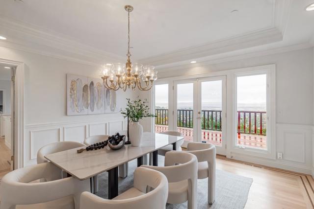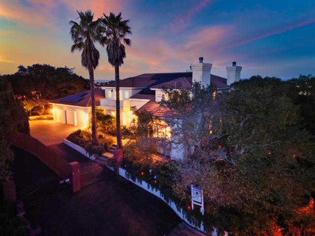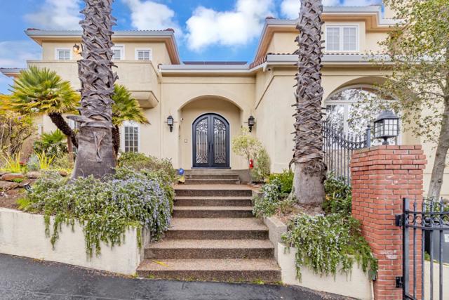Majestically situated on a lush .47-acre lot at the end of a quiet, scenic cul-de-sac, this exquisite custom-built home commands attention with its Mediterranean-inspired design, impeccably manicured grounds, and breathtaking panoramic Bay views. Spanning over 6,500 square feet, the home boasts five bedrooms and five full bathrooms, offering a perfect balance of grandeur and warmth. The thoughtfully designed three-level floor plan features soaring ceilings, elegant marble finishes, and expansive windows that showcase stunning views from every room. Regal fireplaces and gleaming hardwood floors enhance the sophisticated yet inviting ambiance throughout the home. Outside, the grounds are a masterpiece of vibrant landscaping adorned with fragrant wisteria, heritage oaks, and romantic pathways. Sweeping view-facing decks, a level lawn area and an enchanting arbor create an idyllic outdoor retreat, perfect for relaxation or entertaining. Located just minutes from the dynamic energy of Silicon Valley, this rare and extraordinary home provides a peaceful sanctuary to unwind and recharge after a busy day. Welcome home!!!