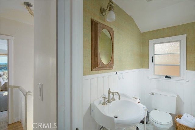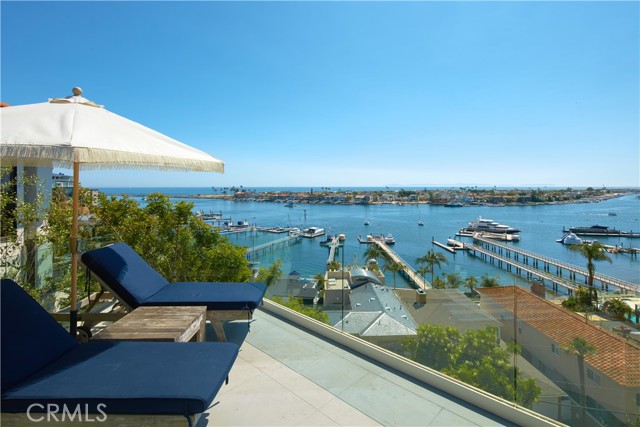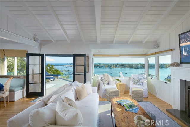 Crowning one of Corona del Mar’s finest ocean-view homesites, this beautifully updated and maintained coastal cottage offers spectacular unobstructed vistas of the Pacific Ocean, Newport Harbor, Balboa Peninsula, Catalina Island and city lights. The highly coveted and rare lot is desired for its premium blufftop location above Bayside Drive, placing it within minutes of beaches, the water, Fashion Island and Corona del Mar’s shops and restaurants. Spectacular panoramic views embellish both levels of the three-bedroom, three-bath home, which reveals a classic California beach style with a Dutch entry door, vaulted-open-beam ceilings, private entry patio with enormous shade tree, and large picture windows. Wood flooring adorns the top floor, where a great room with fireplace and built-in dining area opens to an upgraded kitchen with skylight, stone countertops, white cabinetry, stainless steel appliances, a breakfast bar, pantry and open shelving. One bedroom is located on this floor, and two more are featured downstairs, including a split-level bedroom with sitting room, deck access and separate sleeping areas. Unparalleled ocean and harbor views continue in an oversized primary suite that hosts a sitting area, walk-through closet, rain shower, vessel sinks, and view-enriched sun and shade decks with a fire pit and hot tub.