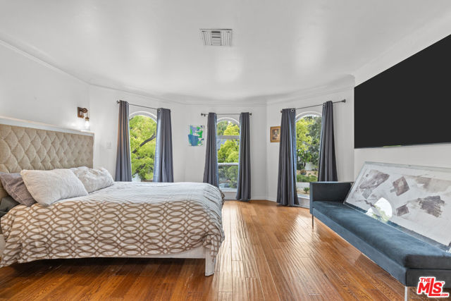 Introducing The Transformer House a bold intersection of architecture, artistry, and endless potential. Built in 1924 and set behind mature hedging on a nearly 10,000 sqft corner lot in the Los Feliz Hills, this Spanish Mediterranean home is both a private sanctuary and a living gallery. Known for its life-size Transformer sculptures, striking installations, and commanding street presence, the home now offers an opportunity to evolve whether preserved, reimagined, or transformed into something entirely new. Beyond sculptural gates and a tranquil water feature, a custom wood-and-metal framed door opens to a dramatic formal entry. Inside, the living room boasts high ceilings, arched windows, and a statement fireplace. The expansive kitchen and dining area features custom cabinetry, leathered granite countertops, a Wolf 6-burner range, Sub-Zero refrigeration, and a walk-in pantry a true chef's kitchen built for both hosting and functionality. A powder room wrapped in custom Keith Haring wallpaper leads to a full bar with speakeasy-style storage, connecting to a flexible recreation room with a pool table, poker table, craps table and a cozy study/ library nook. French doors open to a serene backyard retreat with a spa, pizza oven, full bar, fire pit, and a dramatic waterfall wall anchoring the atmosphere in calm sophistication. The lower level offers exceptional versatility with a private 2-bedroom, 2-bath unit complete with its own kitchen, garage access, and a separate entrance perfect for extended family, guests, or potential rental income. A two-car garage, additional outdoor parking, and generous storage complete the space. Upstairs, the original 1920s staircase, illuminated by a Hollywood Regency chandelier, leads to three bedrooms and three modern baths, each finished in porcelain and quartz with steam showers. Generous closets and a second full kitchen offer layout flexibility for multigenerational living, hosting, or creative adaptation. Whether you're an investor looking for a unique asset in a sought-after neighborhood, or a homeowner with the vision to refine a residence into a one-of-a-kind masterpiece, The Transformer House is a trophy property unlike anything else in Los Feliz. More than a home it's an invitation to create, evolve, and transform.