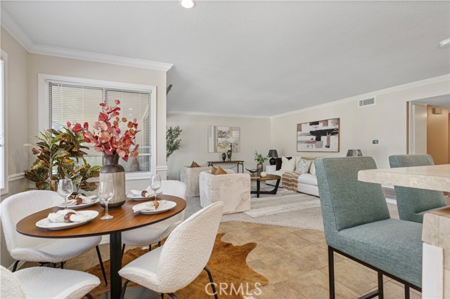 Welcome to this light and bright 3-bedroom, 2-bathroom townhome offering 1320sq. ft. of refined living space. This home boasts elegant interior touches, including wainscoting, crown molding, and a remodeled kitchen that radiates natural light. The real surprise lies behind the 2-car garage: a versatile bonus space! Whether you need a private home office, a personal gym, or massive extra storage, this "hidden gem" provides endless possibilities. Enjoy your morning coffee on the covered balcony with serene greenbelt views, or retreat to the master suite with direct outdoor access. Located just minutes from Irvine Spectrum and Laguna Beach, this turnkey home combines style with incredible utility. Resort-style community amenities included!