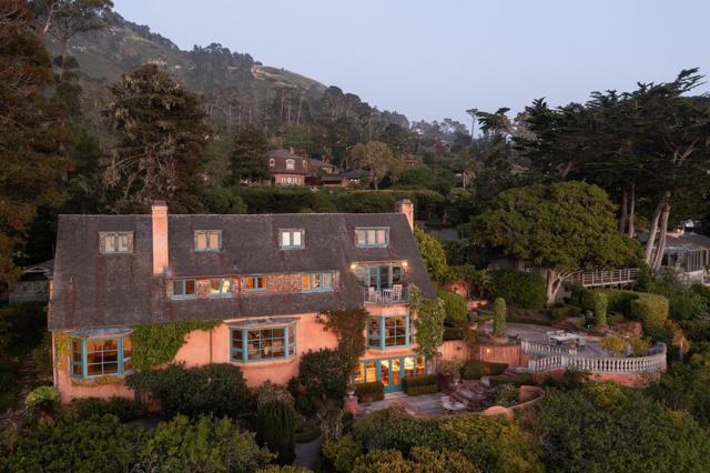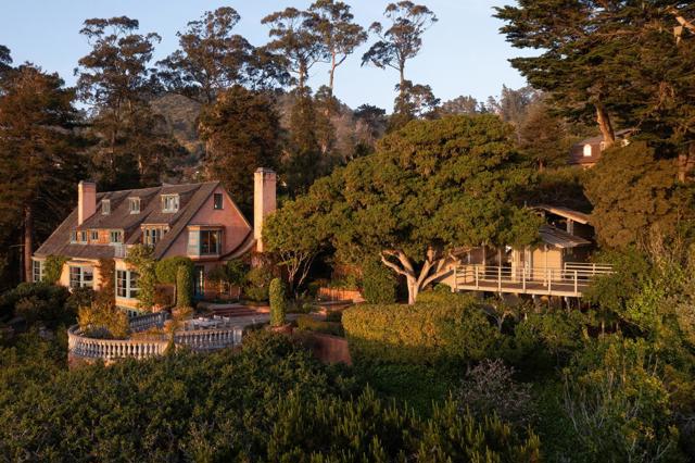 Offered for the first time in nearly 50 years, this extraordinary Carmel Highlands estate is a once-in-a-generation opportunity for coastal privacy and convenience. Perched above the pristine Spindrift coast, it boasts sweeping, unobstructed whitewater views of Point Lobos, Yankee Point, and endless Pacific. The orientation of the house enables views of the sun dropping into the ocean every night of the year. The architectural soul of the home has remained intact, with major renovations executed so seamlessly that they feel original. Spanning four levels, the main house features sophisticated finishes, a sauna, steam shower, theater, and expansive terraces and balconies overlooking lush grounds. Hand-carved limestone fireplaces sourced from Arroyo Seco with French-style laid brick lend warmth and timeless character in the library and living room. The lot is comprised of two lots of record and is ~ 2 flat, usable acres with mature landscaping, tranquil fountains, and a rare natural spring. A detached, 2-bay garage and private guest studio offer flexibility for hosting or options for on-property caretaking. Studded with redwoods and screened by mature hedges, the property offers serenity, security, and the ultimate in coastal privacy. This is not just another house, it's a legacy.