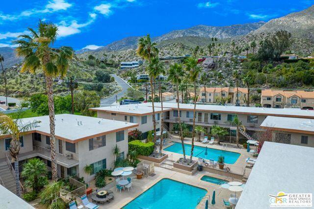 Welcome to Desert Skies Condominiums, one of South Palm Springs' most charming and historic communities. This 1-bedroom, 1-bath condo at 2290 S. Palm Canyon Drive #104 offers an incredible opportunity to own your piece of Palm Springs on FEE LAND (You own the land).Located on the desirable ground level, this is one of only eight units in the community with a private back patio, recently updated with new tile -- perfect for enjoying morning coffee or evening desert sunsets. Inside, you'll find classic Saltillo tile throughout, adding warmth and authentic Palm Springs character. Bedroom has a walk-in closet. The unit is being sold unfurnished and includes a stove oven combo, refrigerator, and microwave, making it move-in ready or ideal for your personal updates.Desert Skies is known for its stunning mountain views, two sparkling community pools, relaxing spa, BBQ areas, two community rooms, and two convenient laundry rooms. The unit also includes one designated parking space.Whether you're looking for a full-time residence, weekend retreat, or investment opportunity, this is your chance to own in iconic South Palm Springs -- surrounded by beauty, history, and endless sunshine.