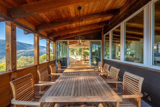 Meticulously remodeled with exceptional craftsmanship combining luxury and flexibility. 233 Country Club Drive offers sweeping east-to-west views of the Santa Lucias, Garland Ranch, and Garzas Canyon from the entire main living space. The main level features 3 bedrooms and 2 bathrooms, anchored by dramatic architectural timber mantle, floor-to-ceiling beams, and massive ridge beam that are rumored to be reclaimed from the historic Esalen bridge in Big Sur, paired with French oak floors and cedar-heart redwood accents. The kitchen includes Carrara marble, a 6-burner Viking range, Viking refrigerator & dishwasher along with custom solid birch cabinetry. The spacious dining room captures the same panoramic vistas, while an additional open-air dining room invites effortless indoor-outdoor living. The private primary suite offers a luxurious bath, soaking tub, and French doors to a garden patio. The separate lower-level unit features its own kitchen, living room, bedroom, bathroom, and bonus room that poses as a second bedroom. ideal for guests, extended family, or income potential. This nearly half an acre property includes lounging decks, a vineyard, hot tub, fire pit, and room for an Airstream.