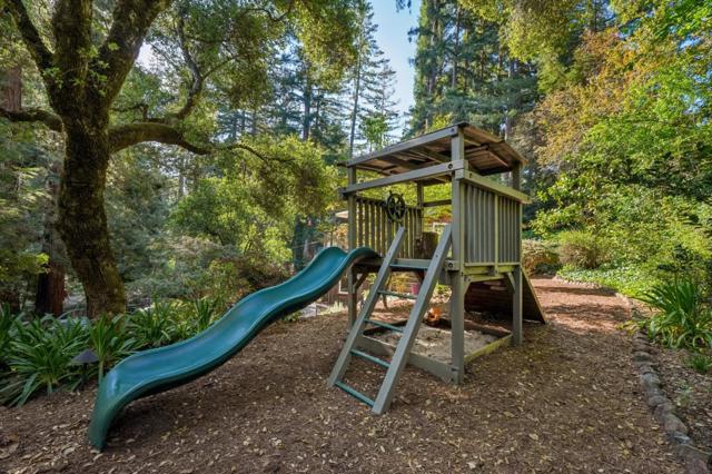 One-of-a-kind mountain retreat on a sun-drenched, fenced 1/3-acre lot surrounded by majestic redwoods. This charming 1930s log cabin has been thoughtfully expanded with a quality newer master suite addition. Features include vaulted ceilings, radiant heated hardwood and tile floors, dual-pane windows, and an open kitchen with granite counters and a designer six-burner gas range. Enjoy serene views and all-day sunlight from the expansive south-facing deck. The detached garage includes an EV charger, attic storage, and parking for multiple vehicles. Landscaped with drought-tolerant native plants. Located within walking distance to Alices Restaurant, Skywood Trading Post, and miles of scenic hiking and biking trails. Easy access to Skyline Blvd and Hwy 84 for a smooth commute to Silicon Valley or the coast. Classic charm meets modern comfort in a peaceful, tight-knit communityperfect as a full-time residence or weekend getaway.