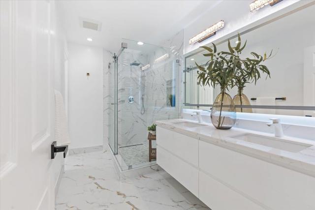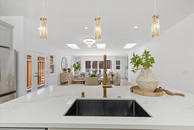 Reimagined in 2025 this Evergreen single-story 4-bedroom, 4-bath luxury residence offers over 2,000 sq. ft. Nearly 93% new construction of refined living space on a low-maintenance lot, delivering modern elegance at every turn. Step inside to soaring ceilings, abundant natural light from 6 skylights, and oak flooring throughout, setting the stage for a sophisticated lifestyle with ensuite bedrooms and your choice of inside or outside laundry. The chef's kitchen is a true centerpiece, featuring a dramatic stone waterfall island, custom cabinetry with abundant storage, premium appliances, a built-in coffee bar, and a cooler crafted for entertainers and culinary enthusiasts alike. The primary suite includes a walk-in wardrobe, indulgent en-suite bath, and serene views of your fig tree and future garden oasis. Designer bathrooms showcase quartz vanities, LED mirrors, and glass-enclosed showers. Flexible laundry options allow for a stackable washer/dryer inside the home or in the epoxied garage. Every detail is newroof, electrical, plumbing, windows, insulation, manicured landscaping with auto irrigation. Additional highlights include an epoxy-finished 2-car garage with EV charging, tankless water heater, and central A/C.