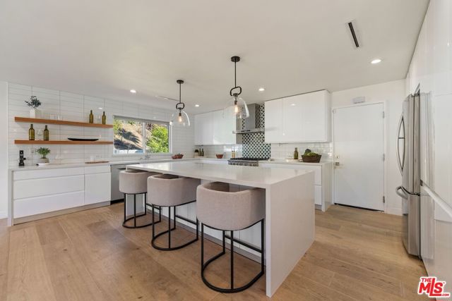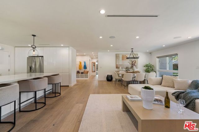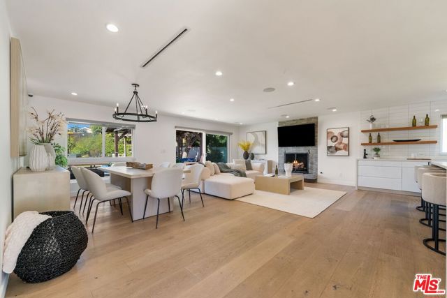 Presenting this privately gated stunning single story entertainer's oasis situated on a rare sprawling lot in Calabasas' highly acclaimed Las Virgenes School District. Set back from the street behind a secure entry gate, this beautifully remodeled residence sits on over half an acre and has been thoughtfully updated inside and out. A beautifully landscaped and illuminated drive leads to the home, creating a true estate feel from the moment you arrive. Inside, the expansive open-concept great room seamlessly connects the dining area, living room with fireplace, and a fully renovated gourmet kitchen. The kitchen is designed to impress, featuring a large center island with additional seating, top-tier appliances, quartz countertops, and extensive custom cabinetry. The well-designed floor plan includes a remodeled powder room for guests and three bedrooms. Two bedrooms are en-suite, including the luxurious primary retreat with a walk-in closet. The third bedroom is conveniently located near an additional full bath. Interior highlights include wood flooring throughout, recessed lighting, high ceilings, newer windows, central air conditioning, and a new heating system. Designed for year-round enjoyment, the great room and primary suite open directly to a spectacular backyard retreat complete with a sparkling pool and spa with a child-safety fence and a new heating system. The outdoor setting also features a fire pit lounge, expansive patio space, covered cabana, outdoor restroom, and a fully equipped cabana kitchen with BBQ, sink, refrigerator, and bar seating. Lush, mature landscaping, fruit trees, and hillside views surround the property, all enhanced by landscape lighting. Additional amenities include an upgraded alarm and security system and DoorBird entry system, a hard-wired interior and exterior sound system with central control tower, newer roof, and a high-end owned solar system with battery backup capable of powering the property independently from the grid and accommodating future expansion. Ideally located a short drive to Malibu beaches, near top-rated schools, parks, shopping at The Commons, and dining (including an anticipated opening of sushi hot spot Shibuya), this turnkey Calabasas retreat presents a rare opportunity to own a private compound in one of the area's most sought-after communities.