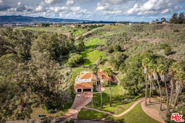 Welcome to your forever home in Lompoc's La Purisima Estates. Rarely available 3.47 acre property in a picturesque location with sweeping panoramic views of the Lompoc Valley. Come spread out, get comfortable and grab your piece of paradise on the Central Coast of California. Enjoy our Mediterranean climate, nearby wine country, and beautiful beaches. This home truly has it all; cathedral ceilings greet you at the sweeping grand entry and the main living room. Floor to ceiling windows offer loads of light and a lush landscape to look out and enjoy. The common living space is ample with a formal dining room, a built-in bar, and a den directly off the eat-in kitchen. The kitchen features a centerpiece island perfect for gathering, grabbing a bite, or gourmet food preparation; there are double ovens, new stainless double dishwashers, a gas cooktop, and storage galore. This property has four bedrooms and four bathrooms; all bedrooms can serve as primary suites with attached private bathrooms. The bedrooms offer an abundance of attractive features including bay windows, a fireplace, and the main primary bedroom offers sliding glass door backyard access, coffee bar nook, dual sink vanity, separate shower and soaking tub, and a private water closet. An outdoor oasis awaits in the back with a lush garden setting that includes a custom outdoor gas grill, large covered patio, and plenty of room to plant and putter for the person with a green thumb. Information deemed reliable but not verified or guaranteed by the broker.
