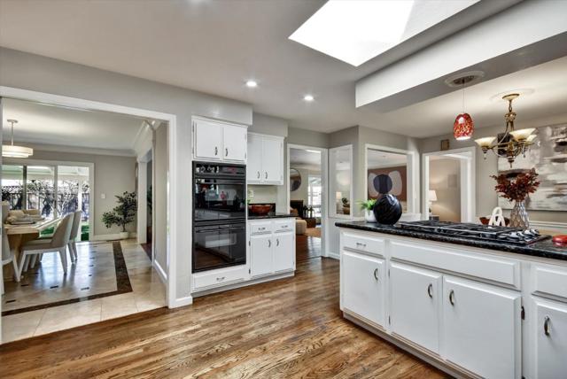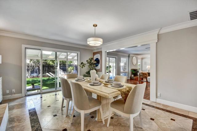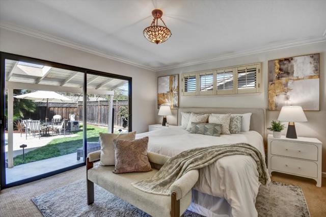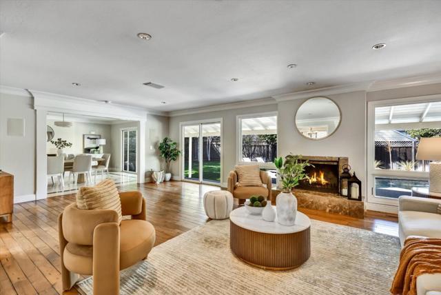 Welcome to this exquisite 3-bedroom, 2.5-bath home in the highly sought-after Belgatos neighborhood of Los Gatos. With a generous 1,972 square feet, this fully automated residence combines modern luxury with comfort. The home offers automation for Lighting, HVAC, Fireplace Pool & Music. The open-concept living space features wood flooring, beautiful crown molding & base boards, wood burning fireplace & recessed LED lighting, creating a warm and stylish atmosphere. Enjoy the large windows overlooking the backyard bringing outside in with dual-pane windows, providing energy efficiency and a serene environment. The open kitchen is equipped with a gas stove, granite countertops, and ample cabinetry for all your culinary needs. Entertain in the separate dining room with automated gas starter fireplace. Three spacious bedrooms offer ample closet space with storage organizers. Separate laundry room and storage pantry. Step outside to your personal retreat, where a new deck overlooks the expansive yard with fresh new landscaping, perfect for entertaining. The in-ground pool and spa invite relaxation, while the paver driveway and walkway adds elegance to the exterior. This large lot offers plenty of space for outdoor activities. Walk to Belgatos Park or short drive to Down Town Los Gatos