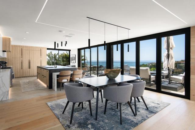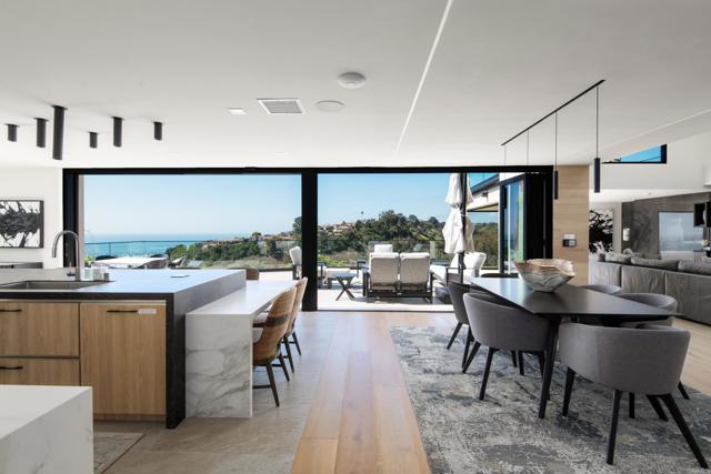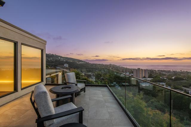 Perched above La Jolla Shores with sweeping coastal views, this 5BR/6BA sanctuary embodies relaxed California sophistication and seamless indoor-outdoor living. Nearly all spaces are on the main level—including the ocean-view primary suite—while a private upper-level guest wing gives visitors their own coastal retreat. Every bedroom has an en-suite bath, and multiple view decks offer endless moments to savor ocean breezes and fiery sunsets. Behind the gated entry, a serene courtyard with a pool and waterfall sets the tone for laid-back luxury. Inside, walls of glass and multiple La Cantina door systems open the main living areas completely to an expansive view patio—perfect for sunset dinners, weekend gatherings, or quiet mornings with coffee overlooking the shoreline. The chef’s kitchen with top-tier finishes flows into the dining and living spaces, where a striking glass-encased wine cellar becomes both a focal point and a conversation piece. On the lower outdoor level, a private wellness and leisure space awaits, complete with a gym space, sauna, jacuzzi, and a game room with pool table and TV—ideal for post-workout soaks, watching the big game, or unwinding with friends. A terraced hillside orchard of grapes, apples, citrus, and avocado trees brings a taste of California to your backyard. Renovated throughout in 2020, this turnkey home invites you to settle in and start living the La Jolla lifestyle—just minutes from beaches, dining, top schools, and freeway access.