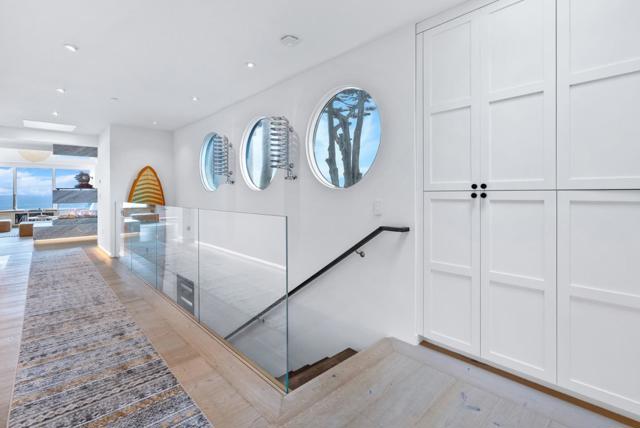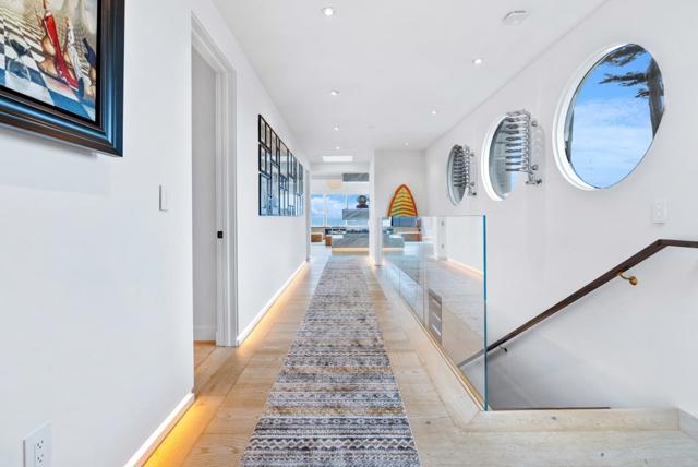 Experience the pinnacle of coastal living at The Landing, designed for those who break boundaries and seek inspiration at the waters edge. This modern beach sanctuary is just ten minutes from Santa Cruzs vibrant surf scene, one hour from SFO, and literally steps from the Pacific. Legendary surf breaks flank both sides of your private backyard, making it effortless to slip out for a dawn session or host board meetings on the sand. Crafted for privacy and ultimate connection to nature, every room in this 5-bedroom, 4 full and 2 half-bath masterpiece is enveloped by panoramic ocean views and filled with the sounds of saltwater and wildlife. Watch whales breaching and pelicans gliding from your sun deck, or recharge with sunset strolls from your private gate to the waterline. This timeless, whimsical state-of-the-art design features a walk-in pantry, climate-controlled wine wall, immersive home theater, radiant floors, and smart lighting with over 176 programmable options for every mood. North Coast exclusivity, unmatched surf, and tech-forward luxury- this is more than a home, its your launchpad for creativity and coastal adventure. Welcome to The Landing, where your next chapter begins with your toes in the Pacific and your mind on the horizon.