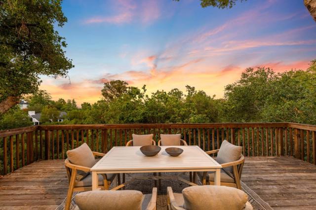 At the end of a peaceful, dead-end street, this warm, inviting, and exquisitely unique property delights and surprises with architectural details and magical surroundings that invoke a far-away lodge retreat which, somehow, is mere minutes from downtown Los Gatos. Stunning architectural details include vaulted plank-and-beam ceilings throughout the open-concept first floor with its great room with wet bar, open kitchen with wrap-around eating bar and clerestory windows, and a sunken family room centered around a wood stove and surrounded by windows and sliding doors with direct access to the expansive back deck nestled among the trees. A bedroom with a full bath and a laundry room completes the main floor. On the lower level, two additional bedrooms share a breathtaking full bathroom with a dual-sink vanity and a custom shower with an arched window overlooking the lower spa deck, plus direct deck access. This distinctive home will amaze and enchant you!