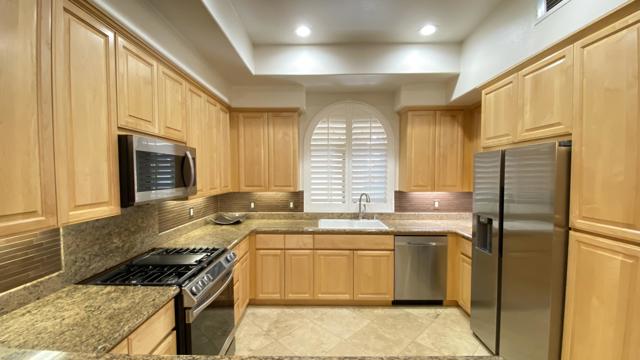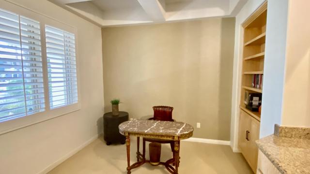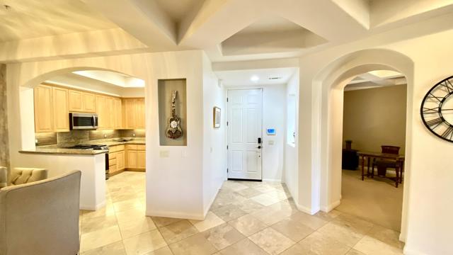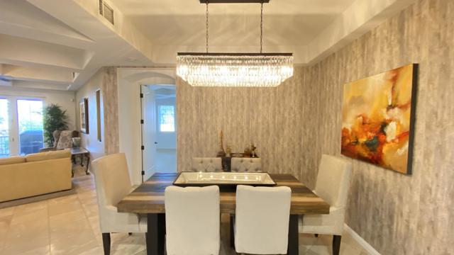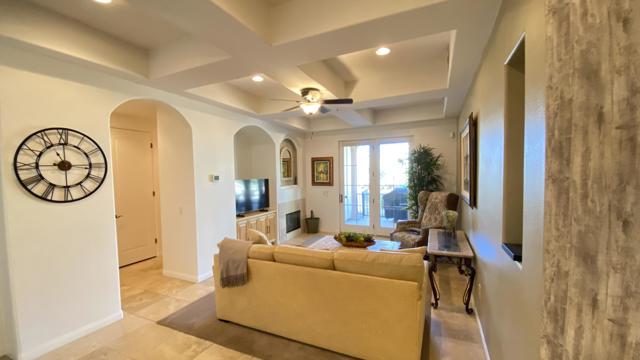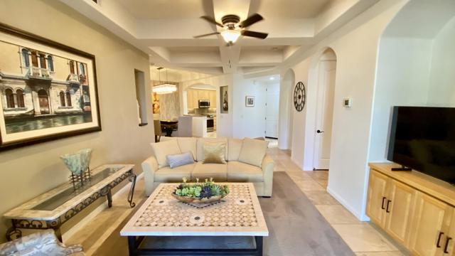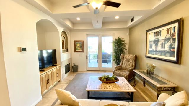 Welcome to Villa Portofino, one of Palm Desert's most sought-after 55+ communities--ideally located near premier shopping and dining, including the world-renowned El Paseo. This beautifully upgraded lower-level condominium offers approximately 1,559 square feet of refined living space, thoughtfully designed for both comfort and style. The open-concept floor plan features two spacious bedrooms--each with generous walk-in closets--two well-appointed bathrooms, and an inviting Great Room with a cozy fireplace. The gourmet kitchen showcases newer appliances, quality cabinetry, and elegant finishes, seamlessly flowing into a dramatic dining area perfect for entertaining. A versatile den with a wet bar provides additional space for relaxing or hosting guests. Step outside to the covered back patio--an ideal setting for morning coffee or evening gatherings. Architectural details abound, including graceful arches, art niches, custom cabinetry, travertine flooring, high-end carpeting, designer window treatments, upgraded lighting, and ceiling fans throughout. A newer water heater adds to the home's value and peace of mind. Priced to sell, this exceptional residence is set within a meticulously maintained community featuring paver-lined streets and resort-style amenities. Residents enjoy a stunning pool with wraparound mountain views, private cabanas, and an expansive 30,000-square-foot clubhouse offering indoor and outdoor dining, a state-of-the-art fitness center, theater, library, card room, bocce ball courts, dog park, and a vibrant calendar of clubs and classes. Experience the best of active adult living at Villa Portofino--where luxury, convenience, and community come together beautifully.