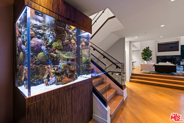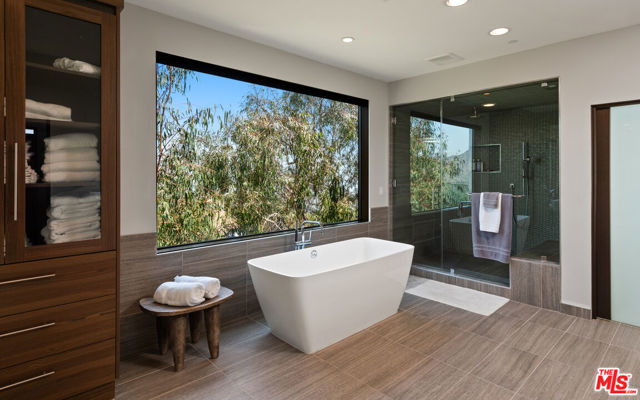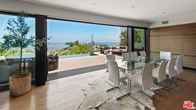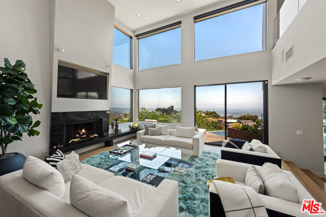 A warm modern oasis perched in the iconic Hollywood Hills. Behind a gated entry, this sophisticated residence showcases sweeping panoramic views of the Los Angeles skyline and the world-famous Hollywood Sign. Designed for effortless modern living, the home features an expansive open floor plan with walls of glass that frame the city lights below. Spanning approximately 5,850 square feet, the property offers 5 bedrooms and 7 bathrooms, including an oversized primary suite with breathtaking views, dual spa-like bathrooms, and generous walk-in closets. A gourmet chef's kitchen, private home theater, and multiple entertaining spaces create the perfect setting for both relaxed living and hosting. Seamless indoor-outdoor flow opens to expansive terraces ideal for entertaining while overlooking the city. Additional highlights include a gated entry and parking for up to 8 vehicles, completing this exceptional Hollywood Hills offering.