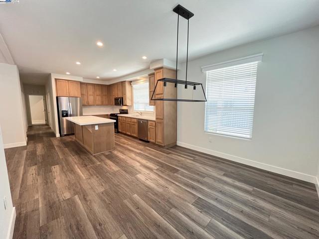 Step into this Brand New, spacious and modern, 3 bedroom, 2 bath, manufactured home. This beautiful home offers a large living room with tray ceiling, recess can lites and celling fan. Its open kitchen with oversize island, new appliances and solid surface counters, is ideal for entertaining. Front dining area with new laminate flooring spread throughout the main living space. Primary bedroom, with sliding glass door to the rear yard, offers a tray ceiling, recess can lites, ceiling fan and massive primary closet. The primary bath features a tiled shower, linen closet, dual sinks and separate water closet. Inside laundry room with hookups and storage. You will love this move in ready, open and modern concept Home. Fireplaces: NO