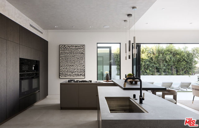 Perched atop one of the highest points in Cheviot Hills, this brand-new contemporary estate, designed and built by Arzuman Brothers, showcases sweeping 270-degree views and architectural sophistication throughout. Set on a 9,779 sq ft lot, this 7-bedroom, 9-bathroom home spans three stories of thoughtfully designed living space. The chef's kitchen features Miele appliances, double islands with a breakfast nook, and custom Italian cabinetry all set against the stunning backdrop of the Los Angeles skyline. A butler's pantry completes this elegant, functional space. Upstairs, the spacious primary suite offers a serene daily retreat complete with a private balcony, cozy fireplace, and an enormous walk-in closet. The luxurious ensuite bath features bespoke tilework, a glass-enclosed shower with bench, and a freestanding soaking tub. There are 6 additional bedrooms, all ensuite with high ceilings and generous closets. The lower level offers the ultimate entertainment experience, with natural light cascading through the staircase window onto a spacious recreation area, lounge with seated wet bar, gym with dry sauna and steam room, theater with tiered seating, and two baths. Fully integrated smart-home technology allows effortless control of security cameras, lighting, climate, music, and more. Moments-away access to the Rancho Park Golf Course, Westfield Century City, and just a few miles to the coast.