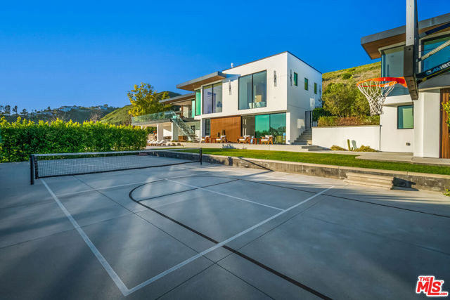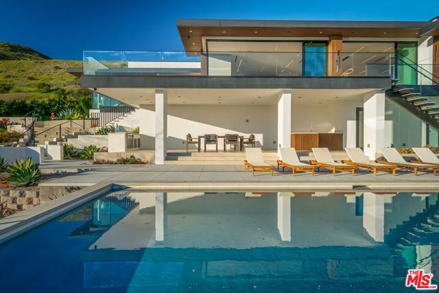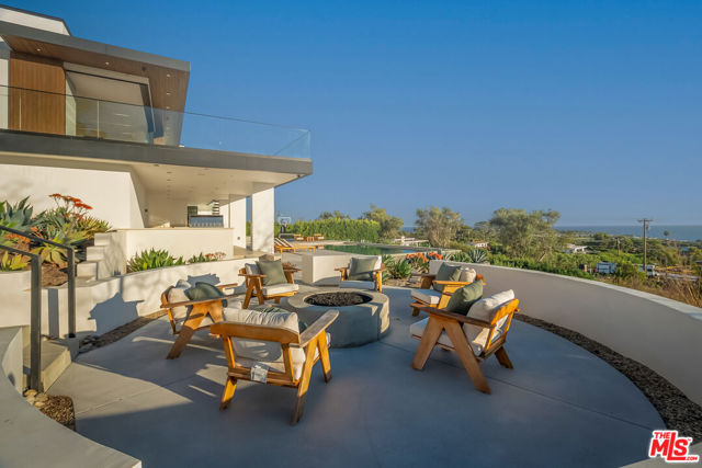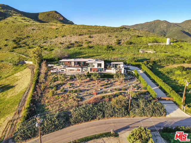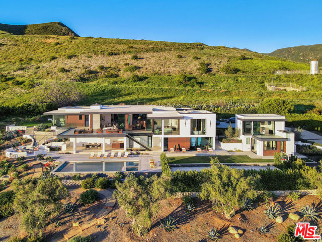 New constuction in Malibu. Welcome to a luxurious haven in the heart of Malibu close to our newly contructed schools. Located on roughly one and a half useable acres, this exquisite 6,782 square-foot estate, including a guest house and spacious three-car garage, offers an unparalleled coastal compound, all in proximity to Zuma beach and miles of hiking trails. With five generously-sized bedrooms and seven and a half bathrooms, this elegantly designed trophy property offers ample accommodations and resort-style amenities for hosting and entertaining visiting family and friends. As you enter through the oversized, glass pivot door, the dramatic great room with its sweeping ocean views, walls of sliding glass and a stunning built-in bar, a focal point for unforgettable gatherings, immediately captivates you. Next to the adjacent towering wine wall, an expansive kitchen is a chef's dream come true with two center islands and gourmet appliances including a six-burner stove, double ovens, built-in espresso maker, microwave and touch-open sub-zero refrigerator and freezer. Flowing seamlessly from the kitchen, is the striking ocean view dining area and spacious living area beyond, complete with built-in flat screen and linear fireplace, all opening up to an entertainer's patio. The large media room off the living room provides a second gathering space for living and entertaining. The primary bedroom suite offers a retreat within a retreat, boasting two luxurious bathrooms and individual walk-in closets, providing the ultimate in privacy and pampering. The entertainment possibilities overflow at this majestic property. Gather with friends around the ocean view fire pit, overlooking the pool and spa. For active lifestyle aficionados, a dedicated pickleball court and basketball hoop awaits your next game and the dedicated poolside gym beckons you to work out. Spacious patios throughout provide the perfect setting for front row seats to the stunning ocean views. A flat grassy area at the west end of the property is ideal for swing sets or outdoor activities, while the impressive gated entry and expansive driveway ensure ample parking for guests. This contemporary estate offers everything you could desire in a luxury property. With its sleek stone finishes throughout and thoughtfully designed spaces, it is a haven for those who appreciate the finer things in life. Don't miss the opportunity to make this extraordinary property your new home.