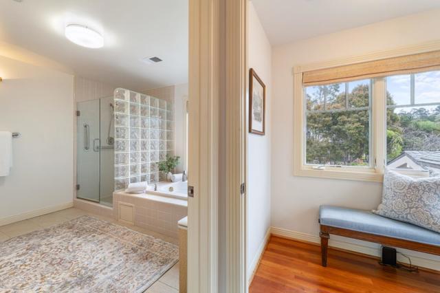 Nestled on one of the quietest streets in Pebble Beach and just a short golf cart ride from the renowned Monterey Peninsula Country Club, this beautifully crafted home offers the rare advantage of newer construction in a timeless coastal setting. Featuring 4 bedrooms, 2 full bathrooms and 1 half bath, the layout is thoughtfully designed for both comfort and entertaining. A spacious great room anchors the home, showcasing rich hardwood floors, abundant natural light, and a well-appointed kitchen ideal for gathering with family and friends. An inviting wraparound porch provides the perfect setting for morning coffee or evening sunsets, while the private backyard and patio offer a peaceful retreat for relaxation or outdoor entertaining. Large windows throughout the home fill the interior with natural light, enhancing the warm and welcoming atmosphere. Upstairs, the primary suite enjoys beautiful ocean views, creating a tranquil escape at the end of the day.
