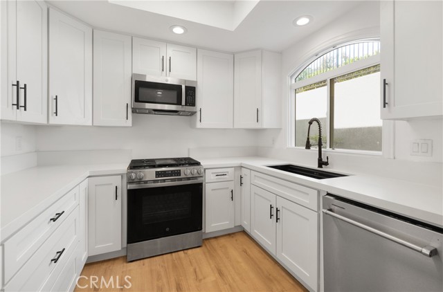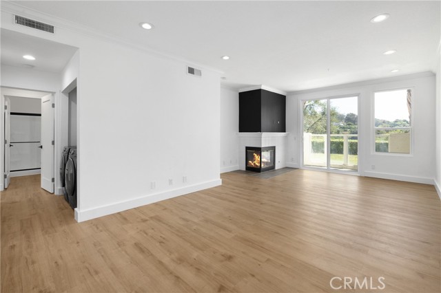 Welcome to 30902 Clubhouse Dr, Unit 30D, a beautifully updated ground-level residence in the sought-after La Vista community of Laguna Niguel. With a bright, open layout and a clean, modern aesthetic, the home offers an easy and elevated living experience. The kitchen features white shaker cabinetry, quartz countertops, stainless steel appliances, and a gas range, all framed by an arched window that brings in natural light. Wood-style flooring runs throughout, creating a cohesive feel, while recessed lighting enhances the home’s refined simplicity. The living room is anchored by a fireplace and opens directly to a private patio overlooking lush greenery, creating a seamless indoor-outdoor connection. The home offers two well-sized bedrooms, including a spacious primary with a walk-in closet and built-in storage. The bathroom has been updated with dual vanities, a full tile surround, and modern finishes. An in-unit laundry area and additional storage add to the home’s everyday functionality. Residents of La Vista enjoy access to a pool, spa, fitness center, and clubhouse, all within a well-maintained community. Ideally located just minutes from Salt Creek Beach, Dana Point Harbor, and Laguna Beach, the home offers a convenient connection to some of the area’s best coastal destinations.