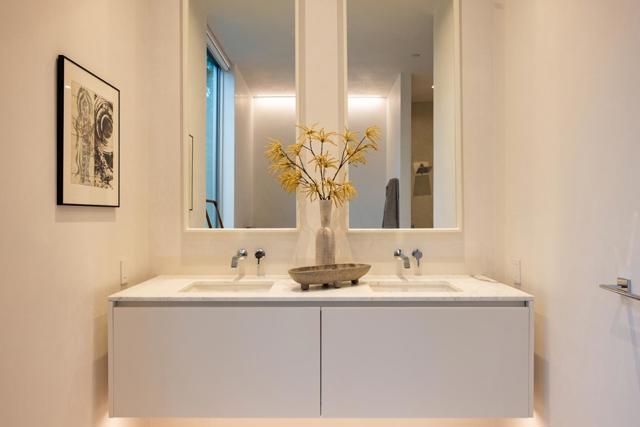 With sweeping views of Spyglass Hills 11th fairway and filtered ocean vistas, the Waterbridge House is an extraordinary Scandinavian-Japanese minimalist estate. This newly constructed compound is comprised of the stunning main house, a private ADU, and a Tea House (Guest House) floating on water. The striking architecture embraces intentional simplicity, blending natural elements with modern form. Two architectural axes, interior and exterior, guide you through spaces that reveal and conceal, including the "Waterbridge," a glazed walkway over a tranquil pond. The sculptural Cloud Steps lead to a light-filled interior where polished concrete floors, Western floor-to-ceiling windows, Italian concealed Infinity doors, and Poliform cabinetry define quiet luxury. Sustainability meets sophistication with triple-glazed windows, radiant heat, and an automated energy recovery system. From Sub-Zero, Wolf, and Miele appliances to Italian Flos lighting and Simply White plaster walls, every detail reflects enduring craftsmanship and environmental mindfulness. Located in the heart of Pebble Beach near The Lodge and by the Spyglass Club House, Waterbridge House is a half mile to the beach and a short drive from all the wonderful amenities of Carmel, Big Sur, and the Monterey Peninsula.