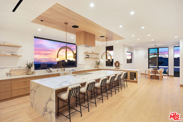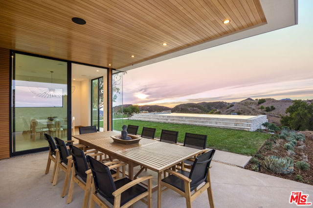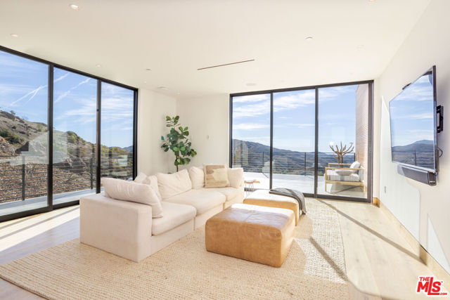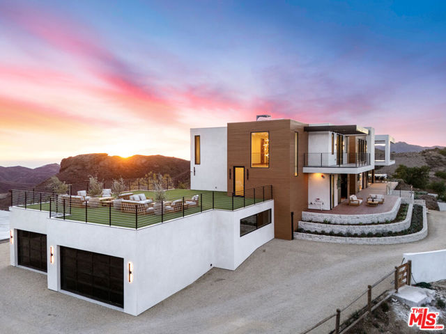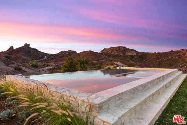 Posted atop the Santa Monica Mountains, surrounded by vineyards and an ocean view, is this newly build, contemporary equestrian estate. Set over 6 acres the property comprises of a 9,000sf main residence, 3,500sf guest house, raised infinity pool, Pickleball Court, garage parking for 14 car parking and paddocks including a 1,300sf Castlebrook horse barn, with horse stalls and tack room. The main residence, which is accessed through a 10' Solid Oak Pivot door, boasts two Great rooms, a gourmet chefs kitchen with 16' island, Wolf / Thermador appliances, a walk in pantry, separate dining and breakfast rooms, as well as media room, office and numerous expansive exterior decks from which to enjoy some of the most spectacle sunrises and sunsets in Malibu. Upstairs, via one of the two custom floating staircases there are four ensuite bedrooms, the Premier suite delivering an unrivaled retreat and a vast walk in wardrobe to suit even the most stylish of buyers. Outside the property boasts a 30' infinity pool, pool bathroom, dining area, numerous seating enclaves, and over an acre of dedicated landscaped gardens and an avocado orchard surrounding the pickleball court. Further down the driveway the separate Guest house is a full 2 bed, 2 bath home complete with Bosch appliances, and sun decks, with additional offices and bathroom below as well as a 6 car garage opening onto its own parking forecourt. The Property is also set up for equestrian pursuits with a 1,300sf Castlebrook horse barn, and several acres of fenced paddocks and numerous trails and hacks to ride out on very close by. Located in the heart of Malibu wine county the property feels like you are in the depths of the Mountains, but just 10 minutes to Zuma beach and PCH, 20 minutes to Malibu Cross Creek and 10 minutes to Westlake, Agoura and the 101.