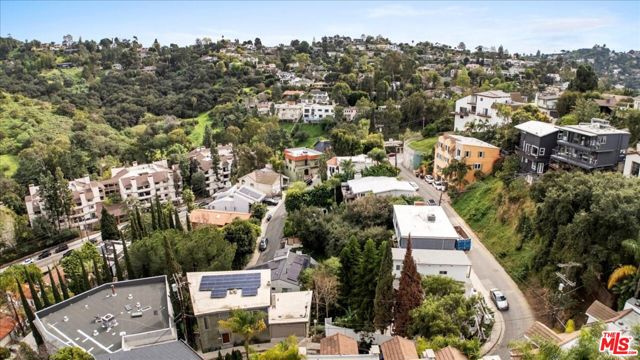 A modern canyon treehouse tucked into the iconic Hollywood Hills. Perched above the canyon, this design-forward hillside retreat offers a rare sense of privacy and tranquility just minutes from the Toluca Lake Village, the Hollywood Bowl and most major studios. French doors open from the living spaces to a charming deck nestled among the trees, creating an inviting indoor-outdoor connection reminiscent of a modern treehouse above the canyon. The open living and dining areas are filled with natural light and framed by greenery, giving the home a calm, retreat-like atmosphere while remaining close to the energy of the city. The thoughtfully designed floor plan features three bedrooms, an updated powder room and an upstairs full bath with pristine sculptural vintage tile blending comfort with nostalgia. The kitchen with high end appliances, European cabinetry & polished concrete counters flows easily into the main living areas & to the outdoor deck - perfect for morning coffee, evening gatherings or just enjoying the peaceful canyon surroundings. Set in the hills above the city with convenient access to nearby hiking trails, restaurants, and entertainment this stylish home offers a quintessential Los Angeles lifestyle that balances privacy, nature, and proximity to the city. A rare opportunity to experience stylish canyon living with warmth, character and an effortless connection to nature.