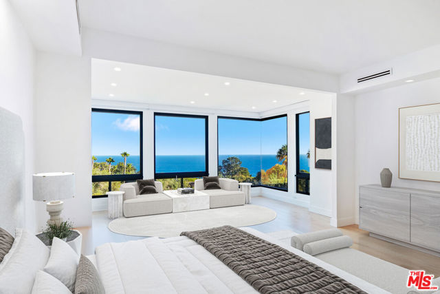Set behind gates on five private acres overlooking Malibu's Encinal Bluffs, this substantial coastal estate offers a rare combination of land, privacy, and ocean orientation just moments from the Pacific. Properties of this scale with established grounds and panoramic views are increasingly difficult to find this close to the coastline. A long private drive leads to more than 10,000 square feet under roof, where soaring cathedral ceilings and walls of glass frame sweeping ocean vistas from nearly every room. Designed for both comfortable daily living and large-scale gatherings, the residence includes six bedrooms and five full plus two half bathrooms, including two ocean-view primary suites. The expansive open-concept kitchen connects seamlessly to multiple living and dining areas centered around a dramatic great room. An approximately 2,000-square-foot finished lower level provides flexible space for a private office, wine storage, gym, media room, or additional storage, along with direct drive-in access ideal for collectors, hobbyists, or secure vehicle storage. Outdoor amenities include multiple terraces positioned for sunset views, a resort-style pool and spa, generous lawns, and a mature orchard that enhances the property's park-like character. Garage parking for up to nine vehicles, together with a large motor court accommodating additional cars, underscores the estate's scale and versatility. Fully gated and approached by a long private drive, the property offers a high degree of privacy and security while remaining close to beaches, shopping, and central Malibu amenities. The combination of acreage, established landscaping, panoramic ocean views, and substantial living space makes this a rare offering for those seeking a true Malibu estate with both privacy and proximity to the ocean.