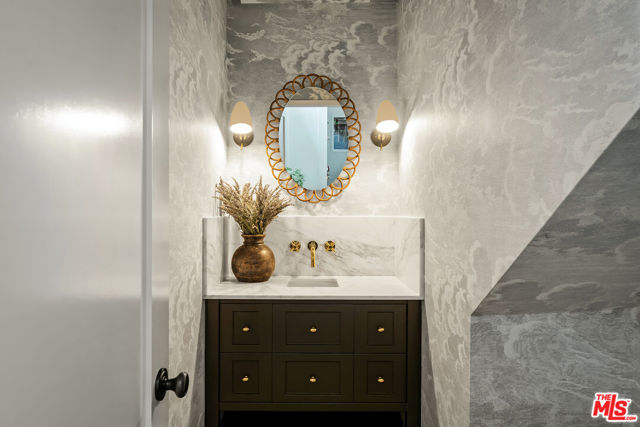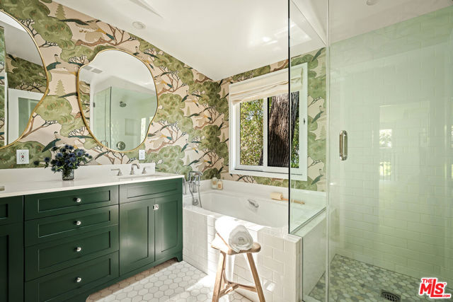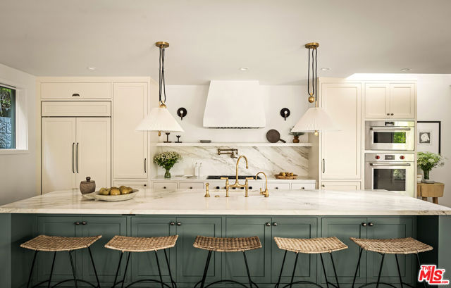 Tucked away in the idyllic enclave of Santa Monica Canyon, 327 E Rustic Rd is a 3-bedroom, 3.5-bathroom retreat with 2,834 square feet of thoughtfully curated living space. Extensively and tastefully renovated, the home was reimagined over the years in collaboration with Amber Interiors and architect Scott Prentice to blend organic elegance with elevated functionality. A 2022 renovation achieved a near-complete reconfiguration of the lower level and an expansion of the home's footprint. The result is a refined and inviting interior anchored by an open chef's kitchen featuring marble countertops, white oak flooring, custom cabinetry and top-of-the-line Wolf and Sub-Zero appliances. Oversized windows throughout bring in soft natural light and frame views of the canyon's surrounding beauty. Upstairs, two secondary bedrooms with en suite baths sit down a hallway from the serene primary suite, which features a spa-like marble clad bath with soaking tub, walk-in shower, dual vanities, hand painted terracotta floor tile, and a generous walk-in closet. A flexible open den once served as a fourth bedroom. Accessed by a private bridge and nestled alongside a creek, the property is surrounded by mature sycamores and soaring eucalyptus trees, offering both privacy and a deep connection to nature with easy indoor-outdoor living. An extensive landscape redesign added a flat grassy backyard, ideal for play, entertaining, or quiet reflection. Just moments from the beach, local restaurants, Canyon Square, and within the coveted Canyon Elementary School district, this one of a kind property pairs privacy, design pedigree, and location in one of LA's most treasured communities.