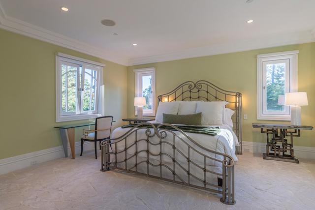 Set on 10 pristine acres in the heart of Pebble Beach, this exceptional modern estate offers a rare blend of architectural sophistication, resort-style amenities & complete privacy. Designed for those who value both elegance and recreation, the property delivers an atmosphere of refined living on an impressive scale. Main residence features an extraordinary collection of amenities including putting green, movie/sports simulator room, expansive game lounge, fully equipped gym, wine room, elevator and multiple kitchens ideal for entertaining or multigenerational living. Six garage spaces and a beautiful separate guest house provide for generous accommodations. With 7 luxe bedrooms, all with en suite baths, the estate is perfectly suited for extended stays, remote work, multigenerational living or a high-end corporate retreat. Sweeping forest views are complemented by expansive terraces and illuminated by a Chihuily-style glass rose garden that becomes a stunning focal point at dusk.