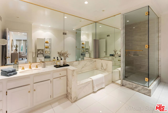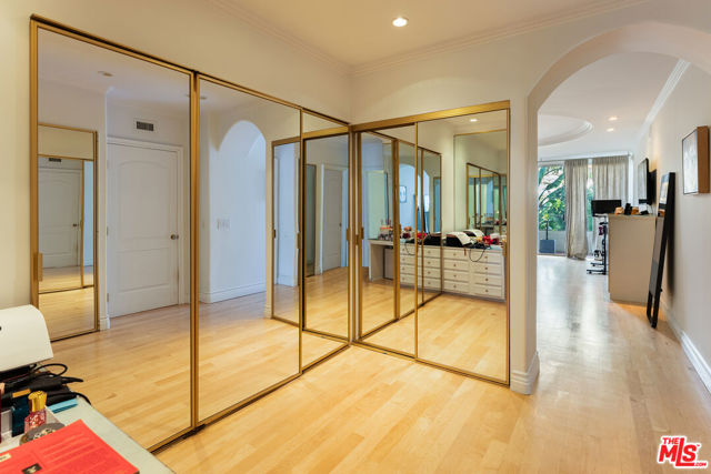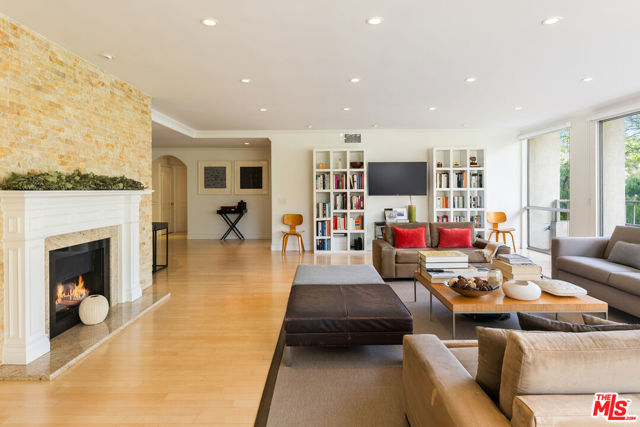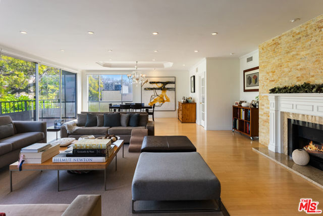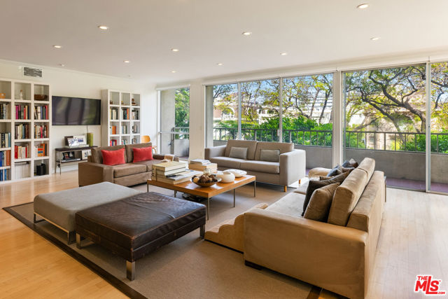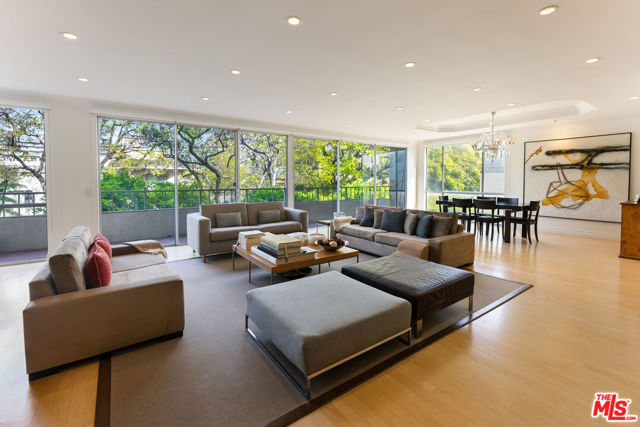 Best location in Beverly Hills! One of the lowest prices per sqft in 90210! Front facing, south-east corner unit in a boutique 24 unit building with only four units per floor. Expansive, private space featuring 2,784 sqft of living and entertaining, beautiful 2 bed + den, 3 bath, huge open living room overlooking gorgeous Jacaranda tree top views through floor to ceiling windows, tons of natural light throughout. Large terrace off living and dining. Massive master suite with private terrace, master bathroom with brand new plumbing and newly remodeled shower + two huge walk in closets. Generous size guest bedroom with en suite bath, plus a den/office space that can be used as a third bedroom. Building amenities include a private pool & spa, sun deck, 24/7 valet parking. Steps away from houses of worship and all of the dining, shopping and entertainment that Beverly Hills has to offer!