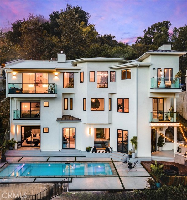 Tucked away within one of Los Angeles' most exclusive, celebrity-studded enclaves of Fryman Canyon, sits a private estate that redefines California living. Designed by AD-published visionary design firm, Studio Rob Diaz. Envisioned in the spirit of the Swedish countryside and inspired by its natural setting, lies a sculptural composition of striking A-frame volumes, cladded harmoniously in wire-brushed cedar. Monumental and inviting, the architecture harmonizes seamlessly with its serene surroundings, where century old redwoods and natural rolling hillsides create a back canvas that only this 1.4 acre estate can offer. Perfectly symmetrical in form, expansive living spaces are defined by soaring 30 foot ceilings in which custom Belgian oak floors, hand finished wall paneling, titanium travertine, copper accents and bespoke lighting, layer this home with warmth and refinement. Thoughtfully compartmentalized, the home balances intimacy with scale, offering seven bedroom suites and eleven baths across multiple forms, each designed with intention and cohesiveness. At the heart of the property is a resort-like pool, grounded by sweeping meadows and limestone decking. Flanking the rear of property are two bespoke Limestone pavilions: one dedicated to wellness with a spa, cold plunge, grand sauna and massage suite; the other a state-of-the-art fitness studio. Nestled between the pavilions, an outdoor kitchen and dining area create the ideal setting for effortless entertaining, while expansive upper decks frame breathtaking vistas of the organic landscape. From its striking architectural pedigree and bespoke materiality, to its unparalleled privacy and connection to nature, the Fryman Estate is a bold statement of design, restraint, lifestyle and legacy; crafted for those who demand the extraordinary.