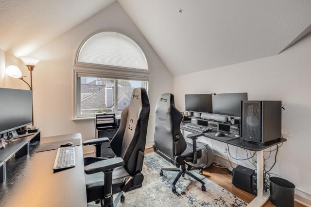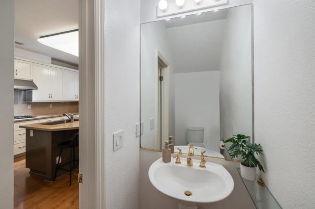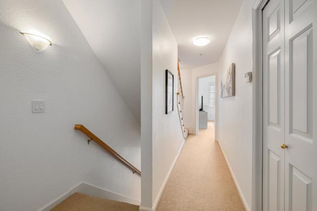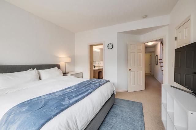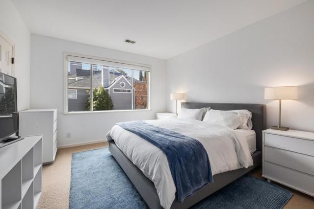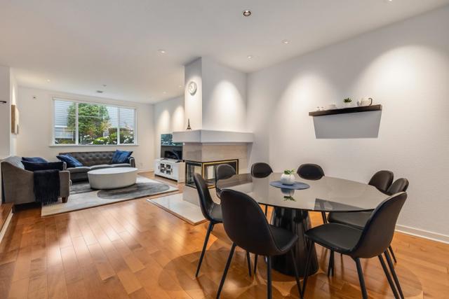Atherton seldom presents a residence of such remarkable scale paired with a price point this compelling. Sequestered at the private rear of the gated and prestigious Atherton Place enclave, this finely appointed 3BR/3.5BA home was architected to evoke the natural function, flow, and livability of a true single-family residence. Natural light pours through expansive picture windows, illuminating an on-trend floor plan with approximately 2,072 SF of elevated living. Lofted ceilings, hardwood floors, and crisp white walls establish a timeless aesthetic as the living and dining areas merge into a generous great room anchored by a modern two-way fireplace. Just beyond, an inviting eat-in chefs kitchen offers quartz countertops, stainless-steel appliances, an oversized island with breakfast seating, and abundant cabinetry. Upstairs, the primary suite includes a walk-in closet, dual vanities, a sunken tub, and an oversized shower, while a secondary ensuite bedroom and laundry add convenience. Rising to the top level, a private bedroom suite pairs with an adjoining office, creating a flexible and secluded space. Completing this distinguished offering are a main-level half bath, an exclusive deck, two secure parking spaces, and additional storage in an exceptionally coveted location.