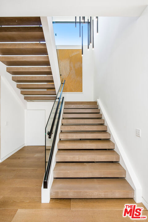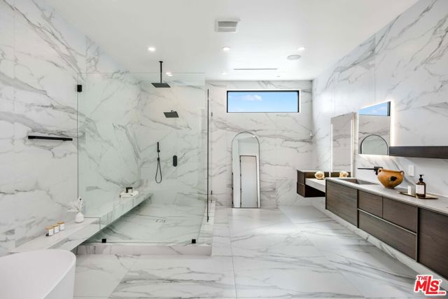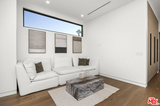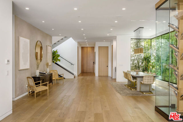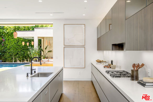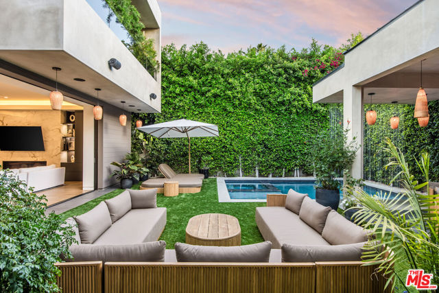 The Alfred residence is a masterpiece of organic contemporary design that balances indoor and outdoor living, located on one of the most coveted streets in West Hollywood. This home's expansive open-concept floor plan spans over 6,110 square feet on an oversized lot with 5 bedrooms, 5.5 bathrooms, an entertainer's backyard, a private movie theater, and 2-car garage. With 12-foot ceilings and floor-to-ceiling windows, natural light pours into every room. Open the living room's custom sliding glass pocket doors to blur the transition between indoor and outdoor when entertaining friends and family. The backyard evokes the beauty of Tulum, with tall and lush hedges providing serene privacy. The covered lime-wash outdoor lounge area includes an integrated sound system, designer pendant lighting, fireplace, and flat-screen TV, creating the ideal space for alfresco dining and entertainment. Spend your evenings preparing dinner in the kitchen while you watch the sunset pour in over stunning views of the backyard, pool, & waterfall. The custom-designed kitchen comes equipped with a massive oversized marble island, two dishwashers, two ovens, a walk-in pantry, and a full suite of Miele appliances including an in-wall fully automatic espresso machine. Moving upstairs, the Alfred's palatial double-sized primary suite is a true sanctuary, featuring a private balcony with floor-to-ceiling sliding glass doors overlooking the backyard, a luxurious walk-in closet, and cozy fireplace. The spa-inspired bathroom is outfitted with oversized marble slabs, a freestanding soaking tub, a frameless glass shower, a vanity, his and hers sinks, and a Toto toilet. The junior suite is comprised of a bedroom and en-suite, each with its own dedicated full bathroom, and a balcony overlooking tree-lined Alfred Street. This unique configuration offers ultimate practicality, with the en-suite being used as an office, den, creative space, playroom, or bedroom. Back downstairs, the Alfred's dedicated home theater is equipped with a cinematic projector and surround sound - subwoofer included - providing the ultimate at home entertainment experience. Additional amenities include, Control4 smart home system controlling lights, speakers, climate, and security, Motorized blackout roller blinds in all bedrooms, controllable via mobile app, Pool and spa heaters controllable via mobile app, Commercial grade wifi mesh network, Front door ring camera and 9-camera security surveillance system with remote live feed access and 24/7 recording to a local secure hard drive. Downstairs: living room, dining room, kitchen, movie theater, office, guest bathroom. Upstairs: primary suite, junior suite and en-suite, guest suite & laundry room. With this home's amazing location, you can easily walk to anything you need. Sushi Fumi, Urth Cafe, Great White Melrose, Alfred Coffee, Melrose Place, the Beverly Center, the list goes on and on. Get out and enjoy the beautiful California weather every day, year round.