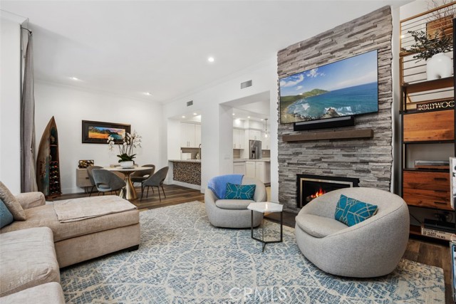 Set within the gated Alcala enclave of Whispering Palms, this refined Davidson-built residence blends elevated design with a relaxed, effortless way of living. The sought-after Viola model offers generous indoor-outdoor flow, airy volume, and thoughtfully refreshed spaces that complement the community’s tranquil Rancho Santa Fe setting. A prior full remodel introduced quartz surfaces, European-style shaker cabinetry, Coretec Blackstone Oak plank flooring on the main level, and KitchenAid appliances. The current owner continued the enhancements with hardwood flooring throughout the upper level, hardwood stairs with a modern open rail, upgraded fireplace inserts, a refreshed patio environment, and additional functional improvements including a newer water heater, water purification system and updated garage door opener. The kitchen features quartz counters, a stylish matte ceramic tile backsplash, a center island, and seamless connection to the great room. The living area centers around a stone-accented fireplace and extends toward the outdoor patio—finished in custom concrete pavers and designed with a built-in dining/bar setup, BBQ, and fire feature for effortless evening gatherings. Upstairs, the private rooms feel warm and calm, supported by rich hardwood flooring and a thoughtfully enhanced primary suite with quartz counters and contemporary finishes. The Alcala community provides a serene resort-style environment with two pools, two spas, lushly maintained grounds, roaming security, and gated access with an attendant on most days. Positioned moments from the La Valle Coastal Club, coastal conveniences, and all the charm of Rancho Santa Fe, this residence offers an elevated lifestyle where comfort, design, and ease converge.