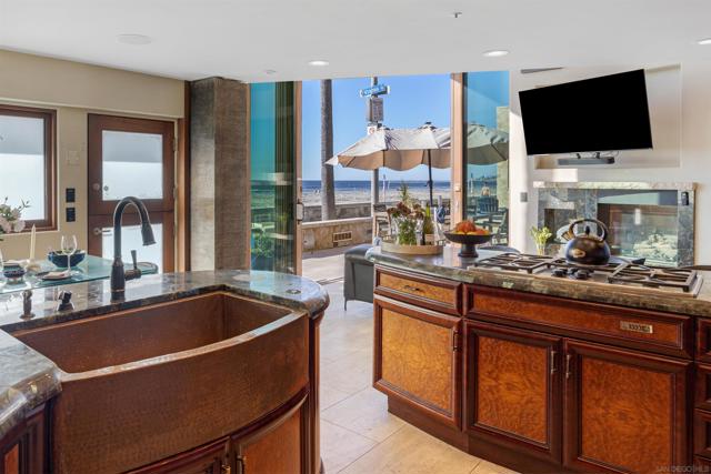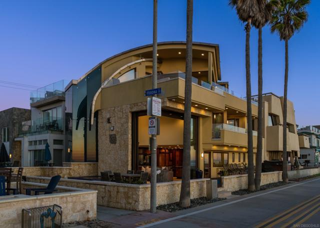 Welcome to this rarely available highly coveted North Mission Beachfront property. This rare coastal gem sits on a coveted corner lot with an expansive 60-Foot Frontage, offering breathtaking panoramic ocean views on the Sand. Spanning 2,354 sq. ft., this residence features 4 bedrooms and 5 bathrooms, thoughtfully designed for luxury living and effortless entertaining. Key Features: Seamless Indoor-Outdoor Living: Floor to ceiling Voluminous 13' stackable glass doors a custom radius design flows throughout with curved ceilings, open to a spacious oceanfront deck with an infinity-edge spa, perfect for enjoying sunsets over the Pacific. The exterior blends limestone veneer and smooth level 5 stucco. Chef’s Kitchen: Custom mahogany cabinetry, fossil limestone marble and granite countertops, a copper farmhouse sink, Sub-Zero stainless steel appliances, and even a built-in acrylic fish tank create a truly one-of-a-kind culinary space. Illuminated staircase with Glass walls leads to the Master Suite: Wake up to the waves with panoramic ocean views, floor-to-ceiling stackable doors, a private patio, and a spa-inspired bath retreat. This is more than a home — it’s a front-row seat to North Mission Beach living, blending sophistication, comfort, and the ultimate coastal lifestyle.