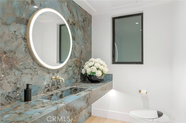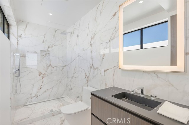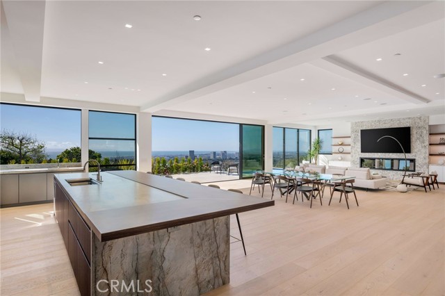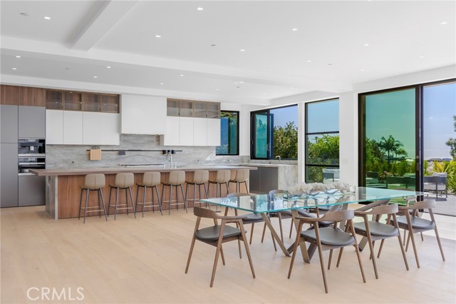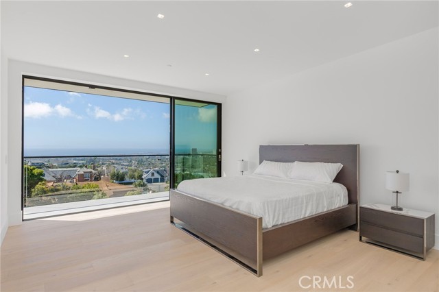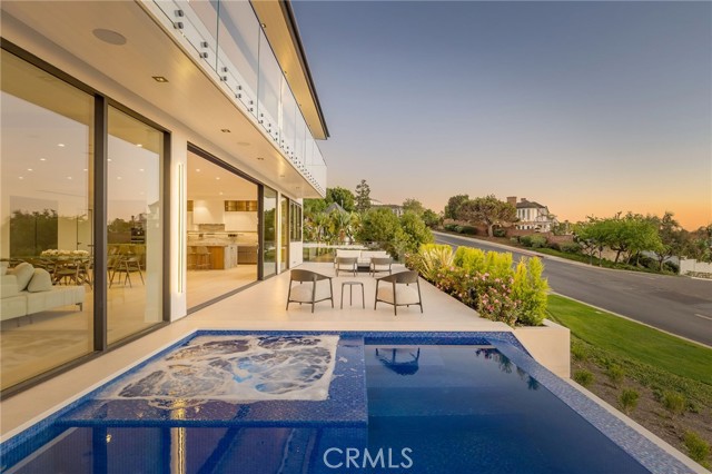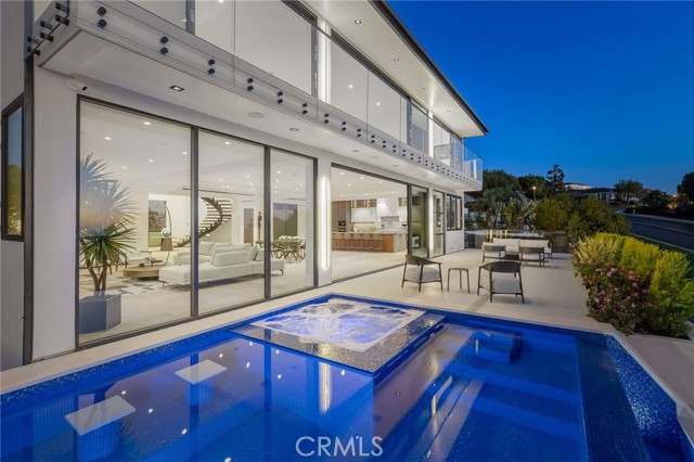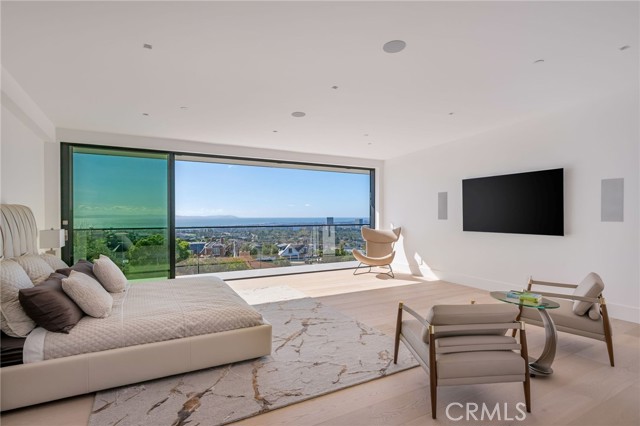 Experience coastal living at its finest in the prestigious, guard-gated community of Harbor Ridge. This new 8,000-square-foot trophy home redefines luxury with an open-concept floor plan and one-of-a-kind details. Unobstructed panoramic ocean views stretch from Newport Harbor to the Palos Verdes peninsula, offering Catalina sunsets and city lights. This modern masterpiece is the perfect atmosphere for family and entertaining, offering five bedrooms and seven bathrooms. Every space is generous in size and quality. All windows and exterior doors are made by Fleetwood, and all of the interior doors are works of art, imported from Italy. European white oak flooring is throughout the house. The home is furnished by Roche Bobois, Cantoni, and Natuzzi. The main level boasts floor-to-ceiling windows and doors, a large foyer with a freestanding curved staircase, living room, fireplace with a 100-inch TV, kitchen, dining room, guest bath, and bedroom/office. Seamless indoor-outdoor transitions lead you to an infinity-tile pool, hot tub, and fire pit. The massive kitchen includes a 17-foot-long island that seats seven, imported cabinets from Germany, and a large, separate pantry. Other features include two dishwashers, two sinks, Kallista faucets, and Miele and Gaggenau appliances. The upper floor offers the master bedroom, two suites, laundry room, and a TV room. The master bedroom is 22 ft. x 22 ft. and features 21-foot glass sliders with ocean views and city lights. The master closet will leave anyone in awe at its size and quality. The master bathroom includes marble slabs for dual showers and marble flooring, all imported from Italy. A freestanding soaking tub and a steam bath complete the space. The lower level features a large family room with an 85-inch TV and a kitchenette with a 12-foot-long island. It also includes a wine cellar, bedroom, gym, and a large laundry room. Trimless lighting throughout provides a minimalist design feel. There are two home theaters with dual subwoofers. All of the 32 speakers and subwoofers in the house are Monitor Audio. The control system is the latest Crestron. There are seven high-end TVs throughout the house and five 4k security cameras. WiFi is throughout. The eight-unit HVAC system features Mitsubishi and Trane equipment. The three-car garage is extra-wide with 12 and 13-foot doors.