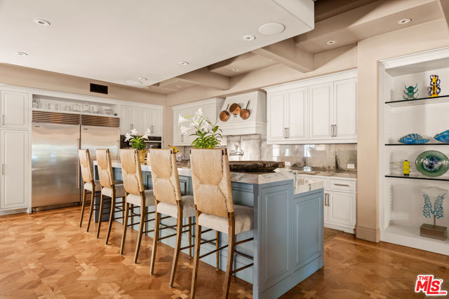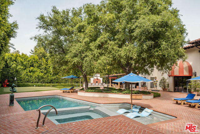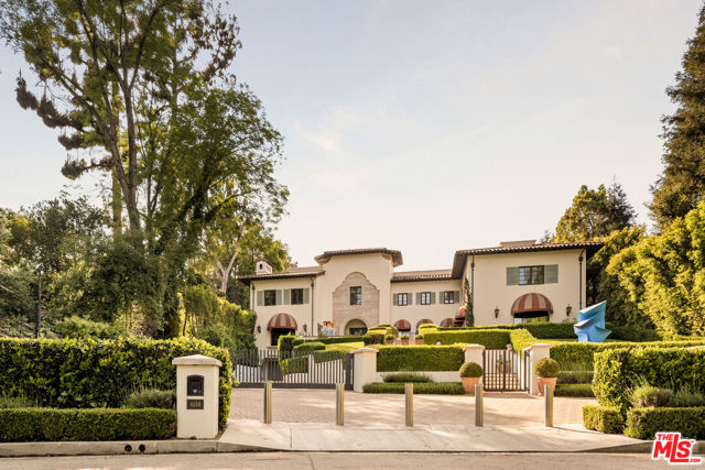 An Estate Fit for a Titan of Industry. Set high above the street behind incredible secure gates, this commanding European-style "Armani Casa masterpiece estate" exudes unmatched curb appeal and stature. A bold architectural statement, built for those who live and entertain on a grand scale. A sanctuary of sophistication using only the finest materials. Every detail was considered, every finish elevated. The scale is unmatched, from expanded interior walkways and massive walls perfect for large-scale art collections, to sculpture gardens, and majestic oak trees anchoring the rear yard with timeless beauty and shade. The home also features a gym rivaling top-tier fitness clubs, a travertine spa and massage room, and an industry-caliber movie theater built to impress. Built new in 2009 and reimagined by some of LA's most sought after designers, the estate features a dramatic formal entryway adorned with custom French Maison-G stone flooring throughout. Brazilian rosewood flooring with custom inlays, rich wainscoting, and elegant light accents. Marvel at the craftsmanship of the Italian & French stone/marble, herringbone wood floors, and exquisite lacquer finished hand-carved staircase and custom steel and glass doors with anti-break film for added security. A sprawling 2000 sf subterranean garage is ideal for a car collector. The elevator provides convenient access to all levels. The kitchen is a culinary haven, centered around a generous island with breakfast bar and outfitted with a full suite of top-tier appliances. Hidden staircases offer discreet access between the media room and the upstairs office, allowing a media executive to move seamlessly between work and leisure throughout the day. The lower level includes a private guest suite, full gym, spa, and massage retreat. Upstairs are four additional en-suite bedrooms, along with a spacious executive-style en-suite office with treetop views, offering the perfect blend of luxury and function. This home delivers Brentwood Park and Hancock Park quality in the heart of Royal Oaks, one of the Valley's most coveted neighborhoods. With grand entertaining spaces, museum-worthy walls for art, and irreplaceable outdoor features, this estate is in a league of its own and a rare opportunity to own a residence of true substance and scale.