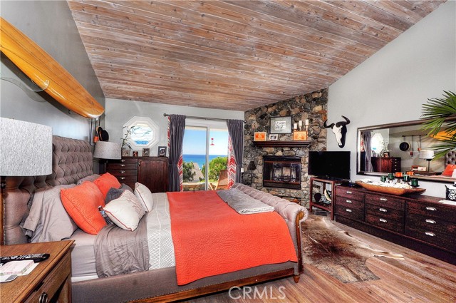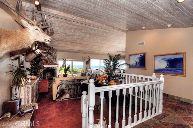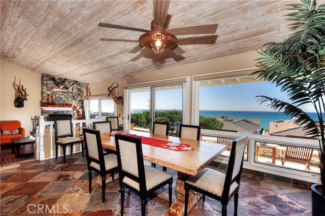 Live the dream in Cyprus Shores in this charming four bedroom house with panoramic ocean views! Sit and enjoy sunsets over Catalina from the back patio, dining room, living room, and kitchen. The rooftop deck overlooking the Pacific Ocean is the perfect place to relax and feel like you are on vacation with no one around. The gourmet kitchen features top of the line appliances and a kitchen island with butcher block. The cozy living room has a grand stone fireplace and sliding glass doors to the back patio. The front courtyard is great for entertaining with outdoor heating and gas fireplace. Two minute walk to the private beaches at Cottons and North Gate. The community offers private swimming pools, park, clubhouses, and tennis courts. Walk or ride your bike to world class surf breaks at Trestles in 10 minutes. Easy freeway access and close to downtown San Clemente.