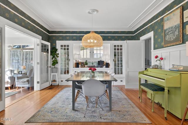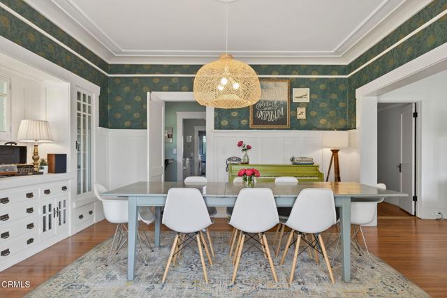 Enjoy the warmth and character of this beautifully remodeled 5-bedroom, 2-bath Craftsman home, perfectly situated on a large corner lot in Oxnard's historic district. Every detail has been thoughtfully restored to honor the home's original 1912 charm, blending classic craftsmanship with modern comfort. Inside, you'll find a bright and open living and dining area filled with natural light and warmth from the original hardwood floors. The remodeled classic kitchen, located in the heart of the home, perfectly captures the spirit of the era while offering modern functionality. Enjoy mornings in the sun-drenched sunroom, ideal for morning coffee, or relaxing in the evening with a good book. Two spacious downstairs bedrooms and a large, period-style bath offer convenience and comfort on the main level. Upstairs, you'll find three more generous bedrooms and another beautifully remodeled bath, each space bathed in natural light and offering ample closet storage. The large enclosed front porch with a swing welcomes you home and invites you to slow down and savor the neighborhood's charm. Outside, a beautifully landscaped yard surrounds the home, with a large backyard perfect for entertaining. A separate garage with alley access adds convenience, while a bonus backyard studio offers endless potential whether as a workshop, gardener's space, or artist's retreat. This home is a rare opportunity to own a piece of Oxnard's history. It has been lovingly restored and is ready for you to create new lasting memories.