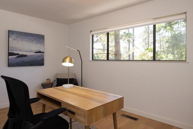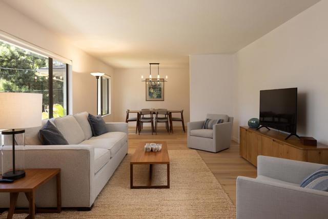 This beautifully updated single-level home feels warm and easy from the moment you arrive. Offering 3 bedrooms and 2.5 baths, the layout flows naturally with a formal living room, separate dining room, and a comfortable family room with wood-burning fireplace just off the kitchen, perfect for everyday living and gathering. The remodeled kitchen features quartz countertops, a Moroccan tile backsplash, new cabinetry, an island, and an induction stove, blending style with function. Wide plank oak hardwood floors run throughout, while natural light fills the home, creating a bright, inviting feel. The primary suite is a peaceful retreat with a remodeled bath, including a curbless shower, dual vanities, and quartz finishes. Additional baths have been tastefully updated. Set on a spacious 12,600 sq ft lot, the sunny backyard offers a paver patio, new fencing, and room to relax or entertain. An oversized 2-car garage (~550 sq ft) adds flexibility. Ideally located near Pebble Beach trails with ocean views, world-class golf, dining, and easy Hwy 1 access.
