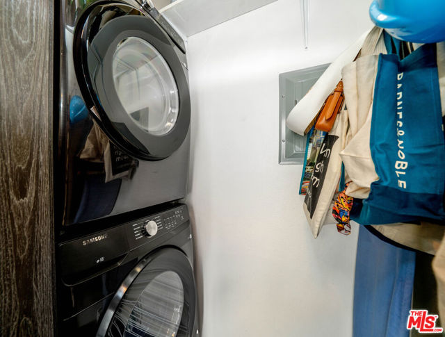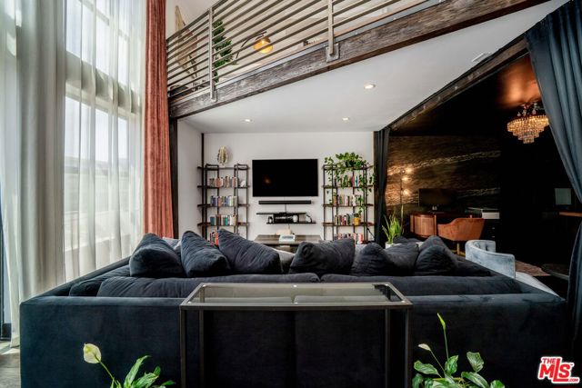 If you enjoy loft living, welcome to this stunning, remodeled top-floor loft, a true entertainer's dream tucked into the Marina's most dynamic and creative streets. Thoughtfully curated with high-end finishes and smart design, this condo blends dramatic architecture with modern comfort. Soaring 17+ foot ceilings and a wall of floor-to-ceiling windows flood the space with natural light, framed by a custom motorized drapery that adds a bold designer touch. The open-concept layout includes a custom speakeasy-style bar, perfect for unwinding after a long day or kicking off an evening of entertainment or relaxation. The kitchen is a showpiece, featuring quartz countertops and a suite of top-tier appliances including a Viking Pro refrigerator, Ilve range, and Fisher & Paykel dishwasher. Both bathrooms are elevated with copper sinks, marble counters, custom-tiled showers, smart mirror lighting, and Toto bidet toilets. A private guest bedroom with en-suite bath is located on the main level, while the upstairs mezzanine hosts a spacious primary suite with a walk-in closet, room for a home office, and serene architectural views. Additional highlights include new HVAC 2024, custom cabinetry and doors, upgraded lighting, EV charging, guest parking, and a rooftop deck with city views.
