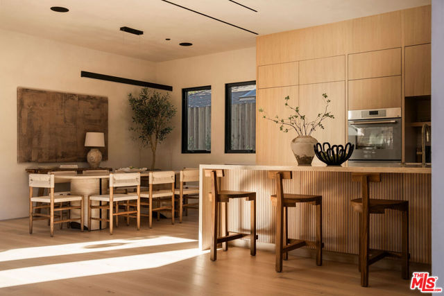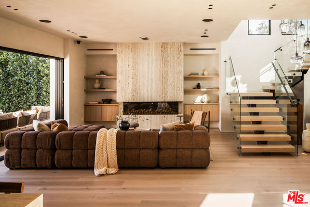 Defined by craftsmanship and intention, this new construction gated residence on Kraft Avenue presents a refined take on contemporary luxury in the heart of the Colfax Meadows. Conceived with an emphasis on proportion and materiality, this five bedroom, six bathroom home features high ceilings, natural materials, white oak floors, and custom details throughout. The composed open layout connects formal living and dining spaces to a chef's kitchen anchored by an oversize travertine island, a full suite of Thermador appliances, custom range hood, pot filler, and a service window bar for effortless entertaining. In the living room, a floor to ceiling travertine fireplace serves as a striking architectural focal point while also creating a cozy ambiance. Expansive glass pocket doors tuck away and open to a private backyard with a resort style pool and spa, built in barbecue, covered patio, and a curated outdoor space. One ensuite bedroom is thoughtfully placed on the main level, while the second level is anchored by a serene primary suite with a private balcony, spa inspired bath, and custom walk in closet, complemented by three additional bedrooms. A detached guest house featuring a sitting area, wet bar and an adjacent bath enhances the backyard experience, offering a refined space for lounging or hosting. Tech-forward features include a Control4 smart system, integrated security, cameras, and multi-zoned HVAC. Located within the Carpenter School District and moments from Ventura Boulevard and major studios, this residence balances discretion, design, and lifestyle.