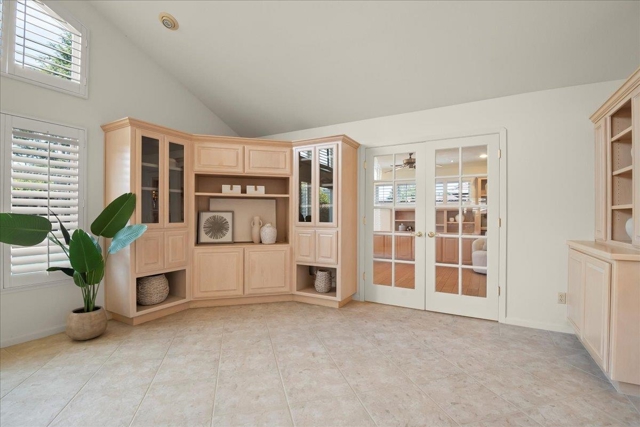Spacious single-level home offering a thoughtfully designed and highly versatile floor plan suited to a wide range of lifestyles. The home features four bedrooms plus a large bonus room with soaring ceilings, expansive windows, recessed lighting, and built-in cabinetry, ideal for recreation, media use, meetings, or large gatherings. A separate, generously sized home office/work area includes extensive custom built-in cabinetry and storage and can be easily converted into a second primary-style suite, making the home well suited for multi-generational living. Formal living and dining rooms provide comfortable spaces for entertaining, while the inviting eat-in kitchen features high-end cabinetry, ample storage, and recessed lighting. Quality cabinetry continues throughout the home, creating a cohesive and polished look. Tile and hardwood flooring throughout are complemented by plantation shutters and recessed lighting. The expansive backyard with pool offers excellent indoor-outdoor living. Conveniently located within walking distance to elementary, middle, and high schools.