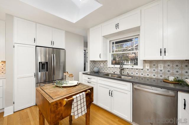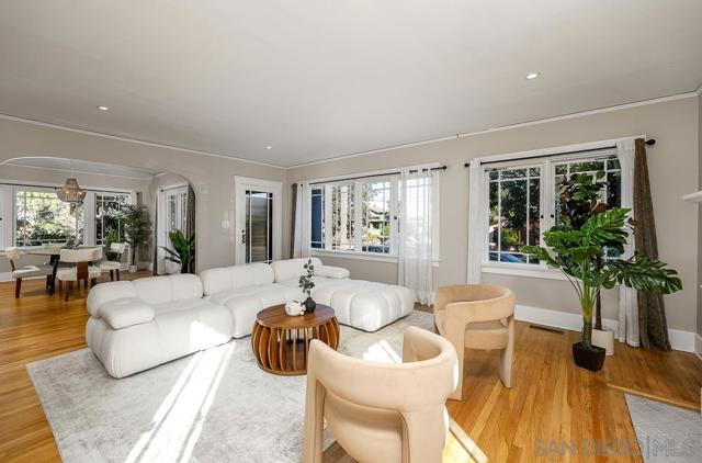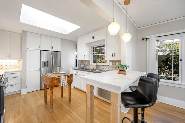 This particular combination of unmatched North Mission Hills walkability, original 1920's craftsmanship, convenient modernizations, bright natural light, all set in a surprisingly serene pocket of town simply doesn’t come around often. The corner of Montecito and Ibis is a special part of San Diego, squarely in the Arnold and Choates historic district, this stunning 1922, oversized 2 bed/1.5 bath Craftsman offers all these features plus off-street driveway & garage parking, outdoor entertaining space and plenty of pride of ownership. In their short time of custody, our sellers have managed to address all the functional needs with new ABS plumbing, updated electrical (no more knob & tubing), tankless water heater installation, repaired original prairie style window latches and openings, restored woodburning fireplace & surround, quiet whole-house fan install, and updated the garage with insulation and lighting. The kitchen has been completely remodeled with improved natural flow into the dining room and space saving stackable laundry hidden away. Out back, the new driveway leads you past the fresh fence work & new rain gutters to a private, tree-lined, brick patio that has been expanded for enhanced enjoyment and secluded entertaining with friends and family. Modernity fades from memory since the 20’s classic features are what really shine as you take in the homes’ charm. Lovely built-ins, beautiful French doors and refinished original hardwood floors leave you wondering what decade we’re living in. More in Supplement... Not only is the home spectacular but if offers phenomenal markets, award winning restaurants and great schools just steps away.