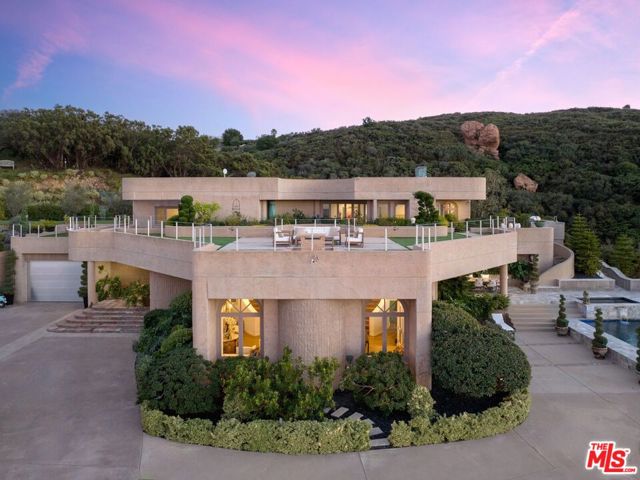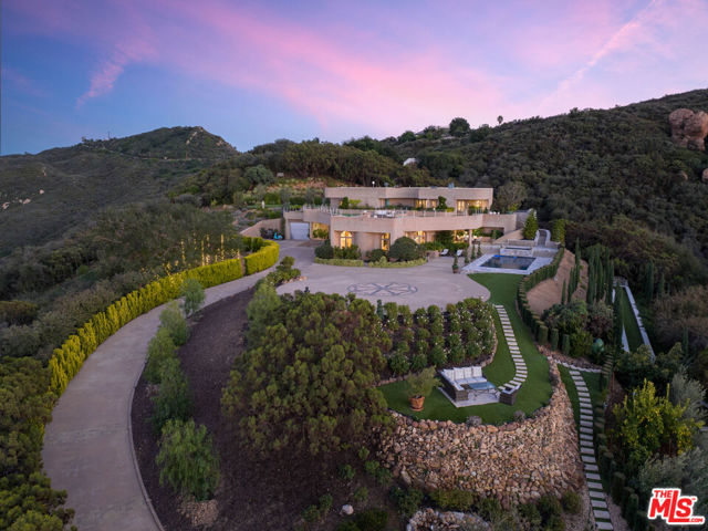 Property fell out of escrow, buyers were unable to perform. Designed in collaboration with renowned architects Roger M Yanagita Associates and Cory Buckner, Architect, this property is situated on approximately 37 acres of pristine landscape, it really transcends the ordinary, presenting itself as an exquisite residence. The long gated driveway, capable of accommodating over 30 cars, unveils a secluded haven. Boasting 360-degree views of the Santa Monica Mountains, the home offers a unique blend of natural beauty and architectural design. The interiors highlight a koi pond and curved walls of glass that create a harmonious connection with the surroundings. The gourmet kitchen is a chef's dream, equipped with top-of-the-line appliances, two prep stations, and a spacious island. This estate is perfect for enjoying the tranquility of the area and embracing a serene lifestyle. The house itself is a testament to durability and innovation, constructed using poured-in-place concrete and featuring a state-of-the-art fire suppression system for added safety. 415 Stunt Road encapsulates peaceful living, combining thoughtful design with a stunning backdrop to create an exclusive retreat. The property has been granted ministry status, the tax exemption status is not yet in place, but can easily be added. Per the sellers, the helipad is operational. In addition, the estate's expansive acreage, dramatic architecture, and ample parking provide exceptional potential as an event space or income-producing venue, offering flexibility for a discerning buyer.